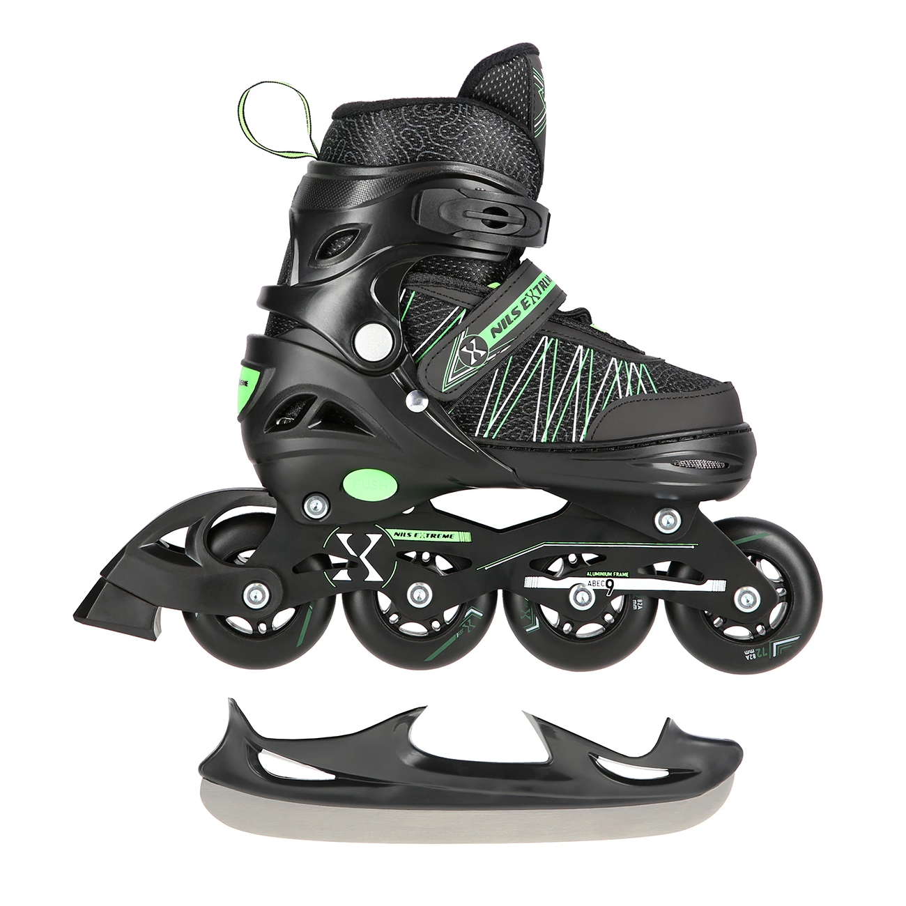 2in1 (rullaluistimet) NILS EXTREME NH11912 In-line luistimet/jääkiekkoluistimet, musta-vihreä, M (35-38)