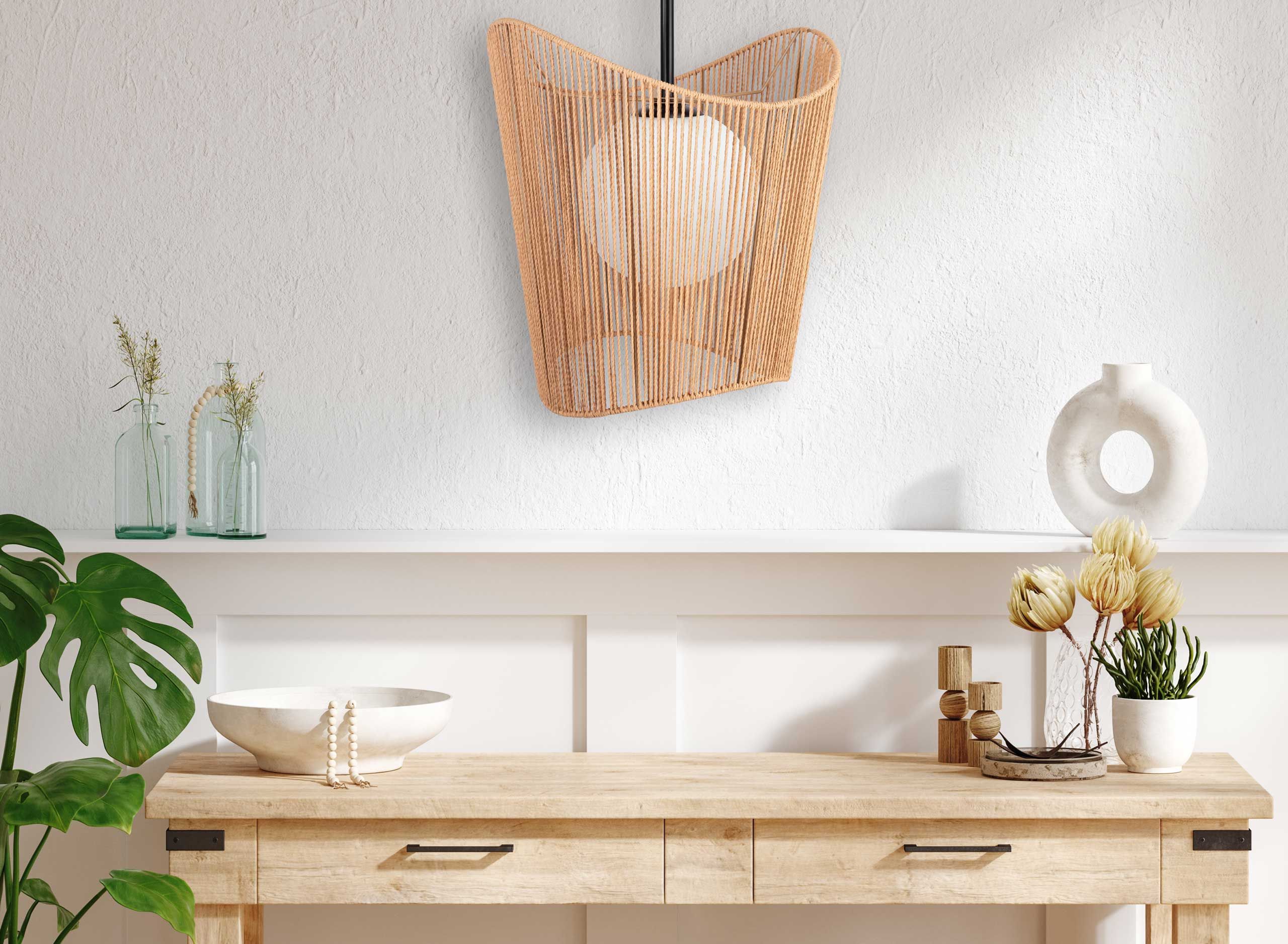 Boho-tyylinen kattovalaisin on ainutlaatuinen yhdistelmä luonnollista juuttinarua ja kestävää metallia, jotka yhdessä luovat lämpimän ja kodikkaan tunnelman sisustukseen. Valaisin on... Lue lisää