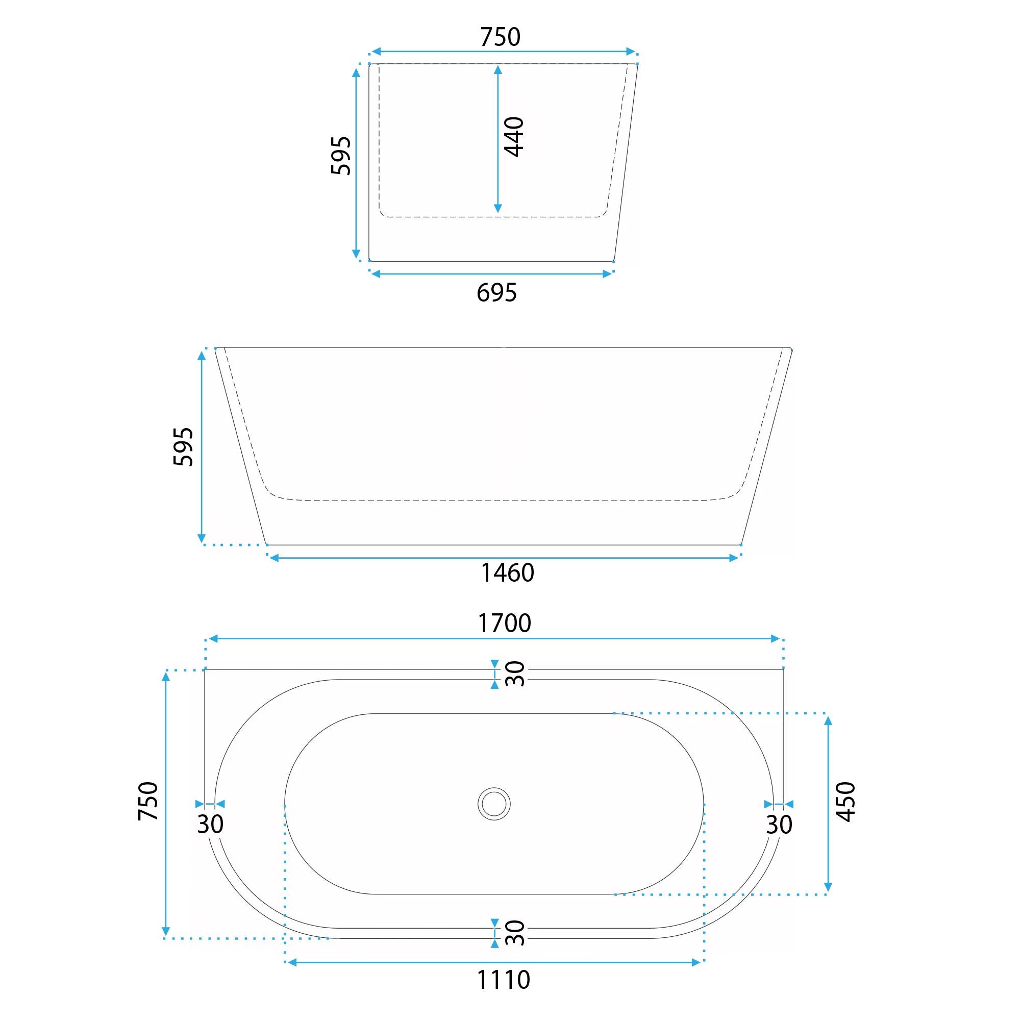 CAPRI seinäakryylikylpyamme 170cm – Musta