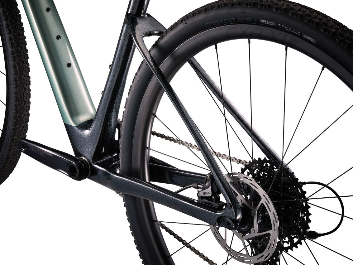 Komposiittirunko on suunniteltu erityisesti etupyörää varten - 40 millimetrin pehmuste pehmentää kuoppia, joten voit ajaa pehmeämmin ja nopeammin soran ja lian päällä.