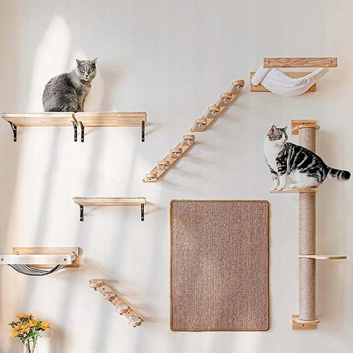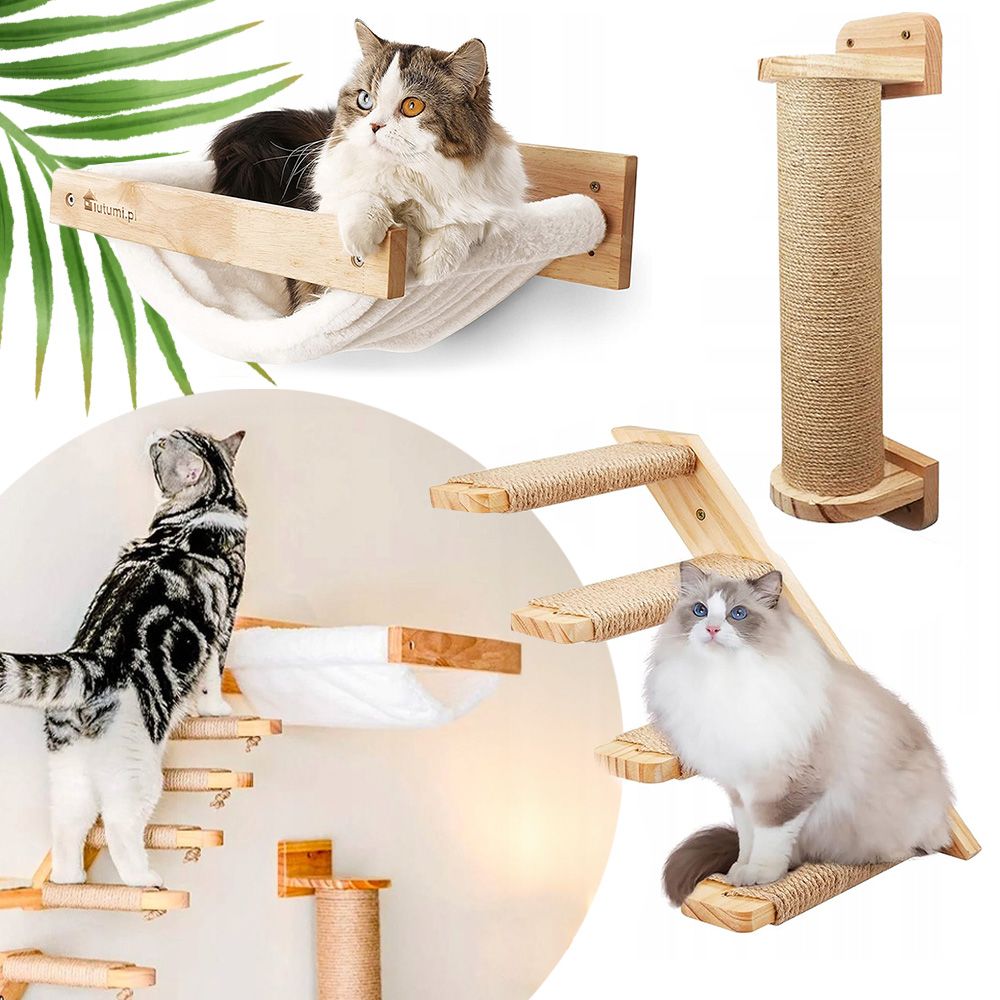 Seinäelementtisarja, joka on suunniteltu tarjoamaan kissallesi ainutlaatuisia kokemuksia ja viihdettä. Tämä kattava setti sisältää kolme avainelementtiä: raapimispylvään, riippumaton ja askelmat, jotka eivät ainoastaan ​​tyydytä kissasi luonnollisia vaistoja, vaan ovat myös tyylikäs sisustus jokaiseen tilaan.