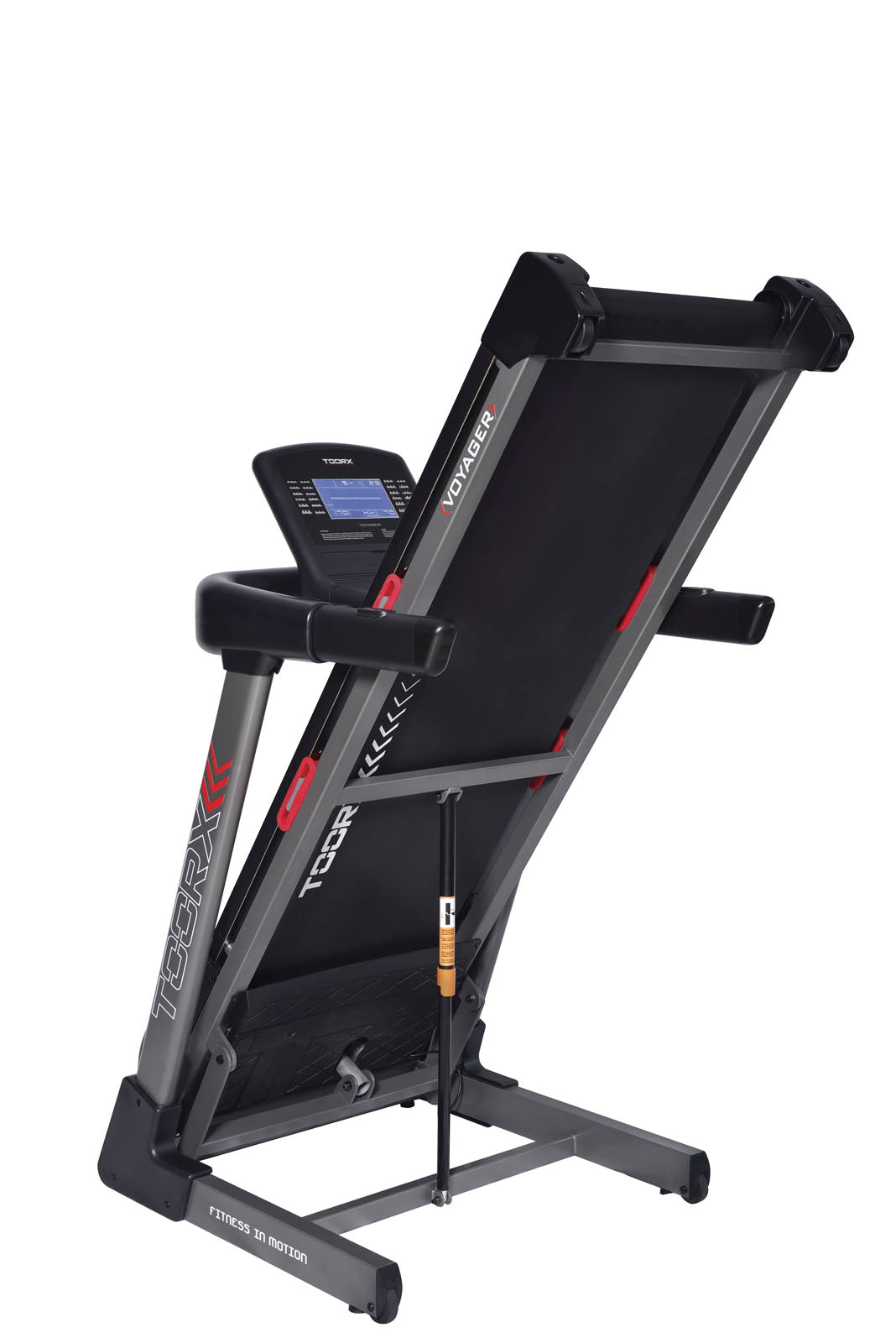 Moderni Toorx Voyager -juoksumatto on varustettu 141 x 48 cm:n juoksumatolla, ja se on suunniteltu kaikille juoksun harrastajille, jotka haluavat treenata kotona kuntosalin sijaan. Juoksumatto on varustettu hiljaisella ja tehokkaalla 2,75 hv:n moottorilla, 15 %:n kaltevuudella ja laadukkaalla rungolla, joka mahdollistaa harjoittelun jopa 120 kg:n painoisille henkilöille. Suuressa LCD-näytössä näkyvät selkeästi kaikki tärkeät harjoitustiedot, minkä lisäksi voit valita monista harjoitusohjelmista. Toorx Voyager on yhteensopiva Zwiftin, Kinomapin ja muiden sovellusten kanssa.