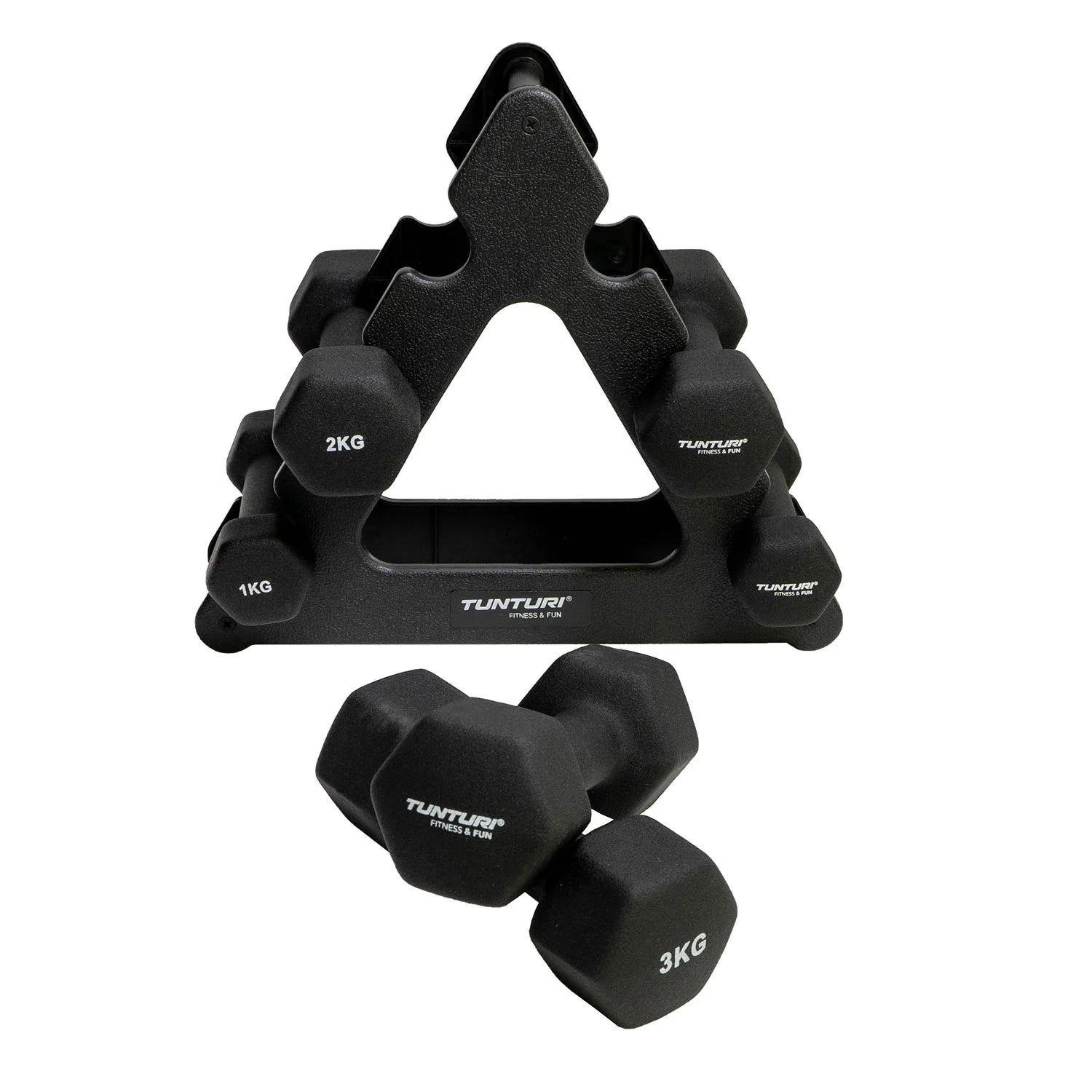 Käsipainot TUNTURI Neopreeninen käsipainosetti, 3 paria + pidike