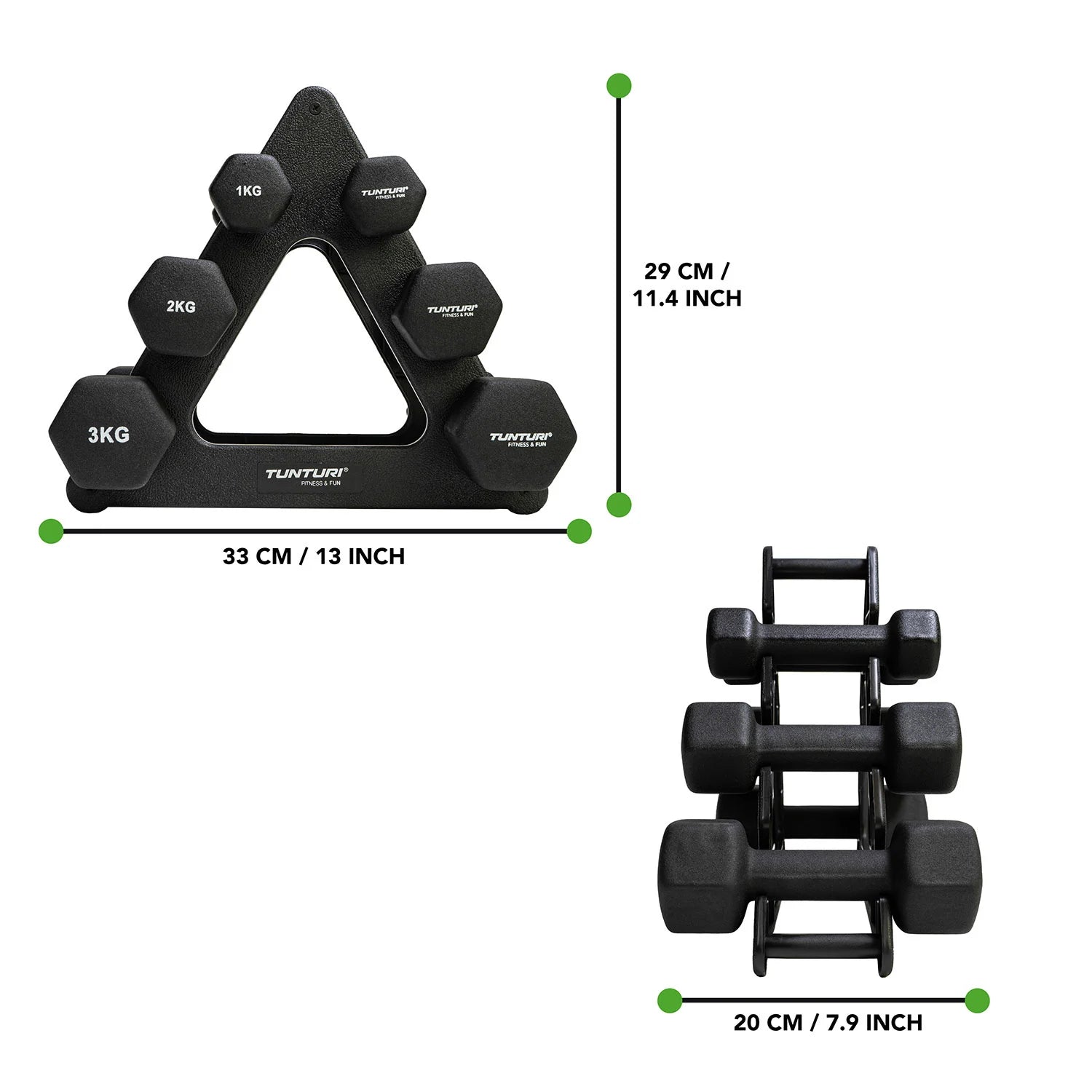 Tunturi käsipainosarjan edut - Käsipainojen säilytyskehyksellä varustettuna