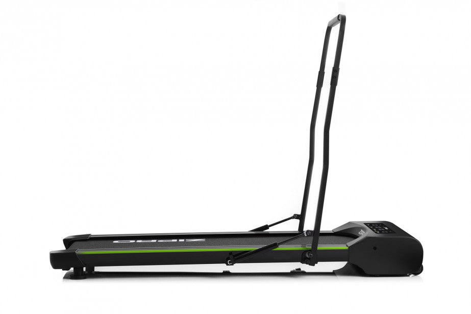 Zipro Lite -juoksumatto on täydellinen treenikaveri myös hyvin pienessä asunnossa - liu'uta treenin jälkeen vain kahva alas ja voit sijoittaa juoksumattoa sängyn alle tai pystyasentoon seinää vasten.