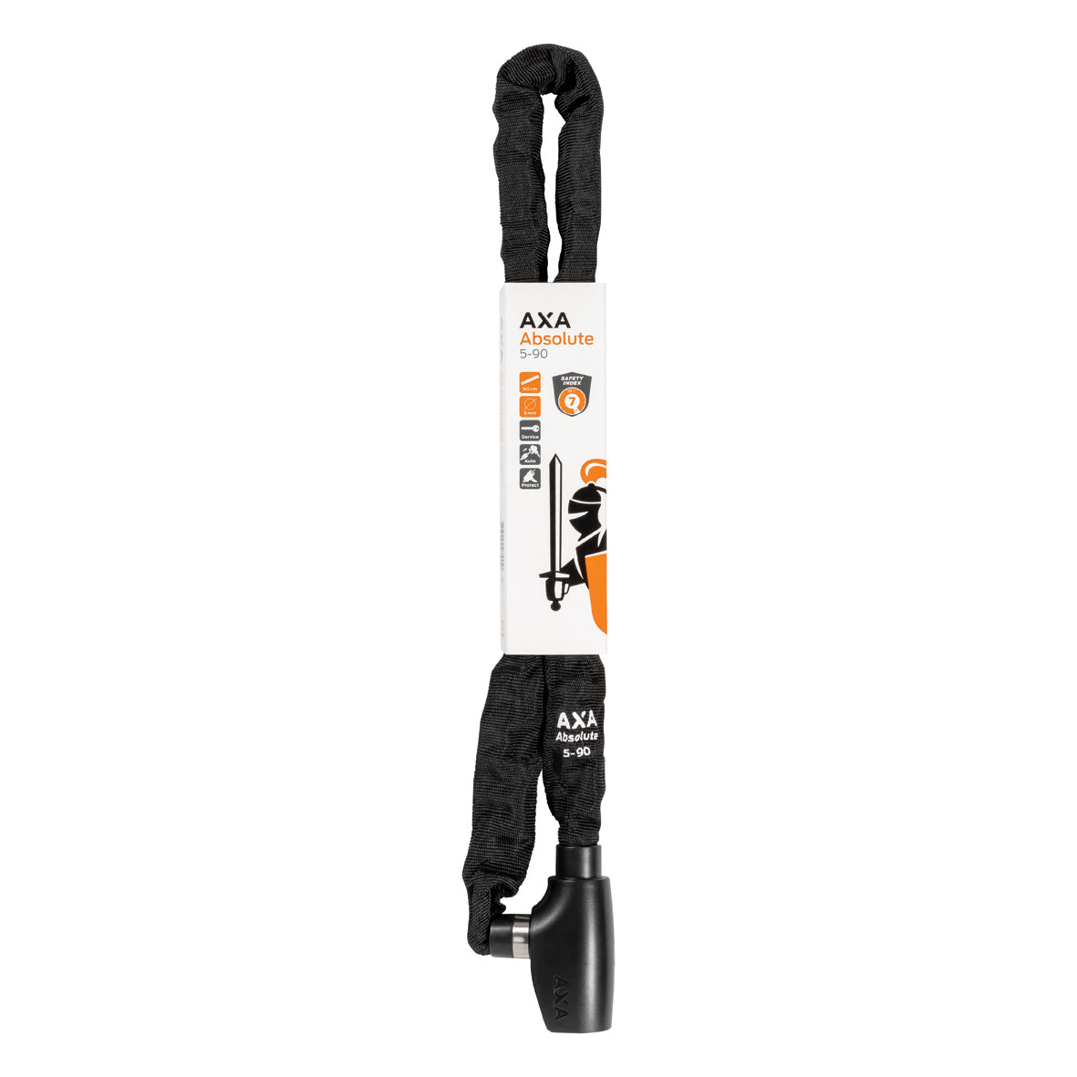 Absolute 5 on ketjulukko jokapäiväiseen käyttöön. 90 cm:n pituutensa ansiosta voit helposti kiinnittää pyöräsi pylväiden ympärille tai aitaan. Tässä lukossa on myös automaattinen lukitus, joten sinun ei tarvitse edes laittaa avainta sisään lukitaksesi sen, voit vain liu'uttaa lukon kiinni. Ketjun ympärillä on myös vahva polyesteripinnoite, joka estää pyöräsi maalin naarmuuntumisen. Jos kadotat avaimesi, voit tilata uudet AXA:n online-avainpalvelun kautta.