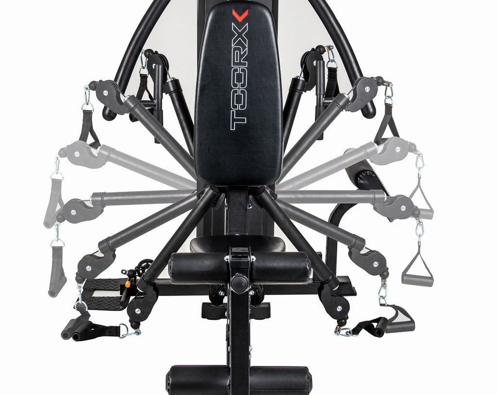 Toorx MSX-90 on valmistettu korkealaatuisista ja kestävistä materiaaleista, ja se mahdollistaa turvallisen harjoittelun polyuretaanipinnoitetun teräsvaijerijärjestelmän ansiosta. Voimalaitteen liike on sulavaa kuulalaakereiden ansiosta. Selkänoja on säädettävissä 3 eri portaalla.