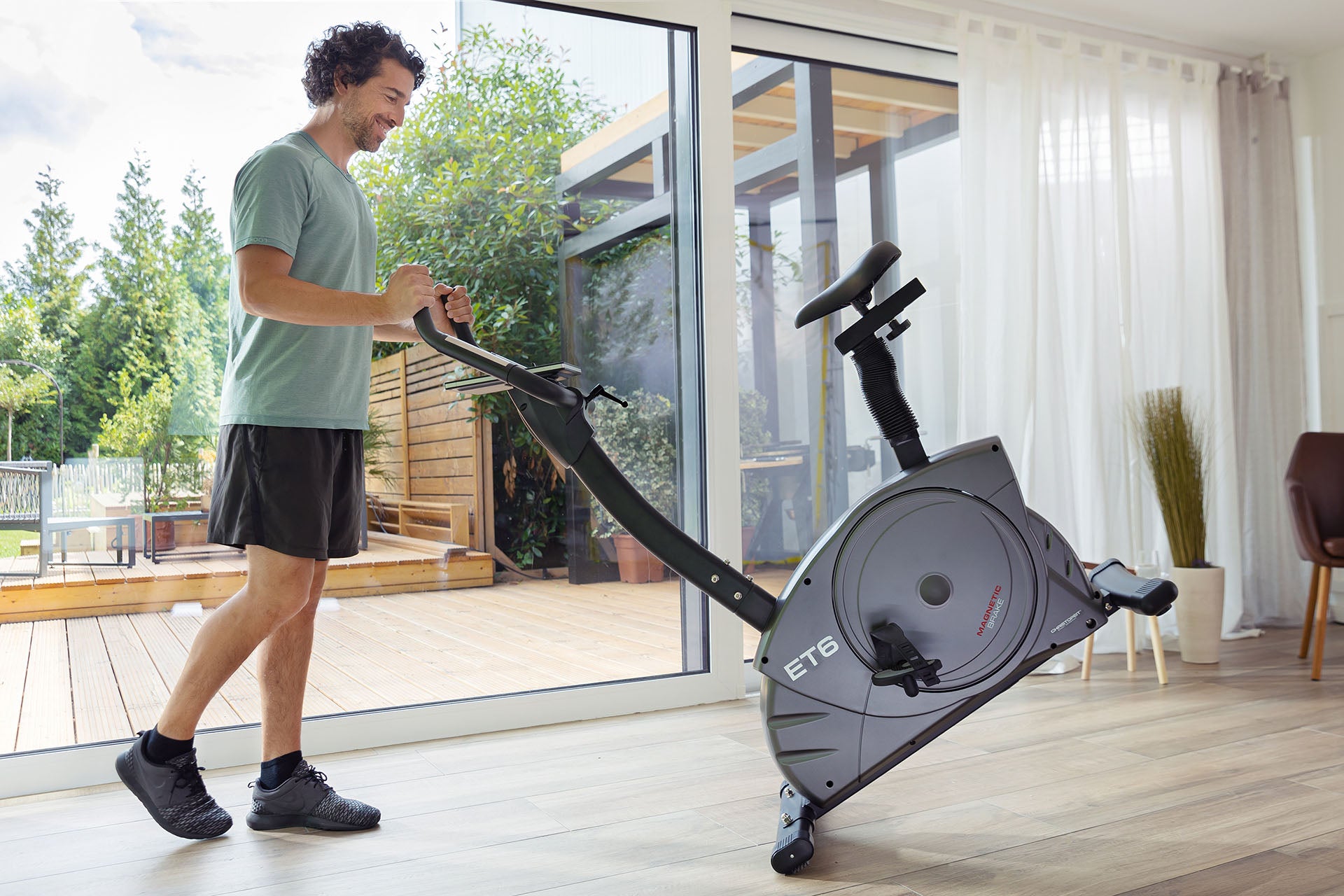 Sykesensorit on integroitu ohjaustankoon - kätevä tapa seurata sykettä harjoituksen aikana. Sykevyön käyttöä varten tietokoneeseen on jo integroitu vastaanotin. Satula ja ohjaustanko ovat kallistussäädettävissä, joten voit valita mukavan harjoitteluasennon. Liukumista estävät polkimet, joissa on erillinen poljinkiristin, takaavat vakaan poljinvakauden. Etupuolella olevien kuljetuspyörien ansiosta voit helposti vaihtaa harjoituslaitteen.