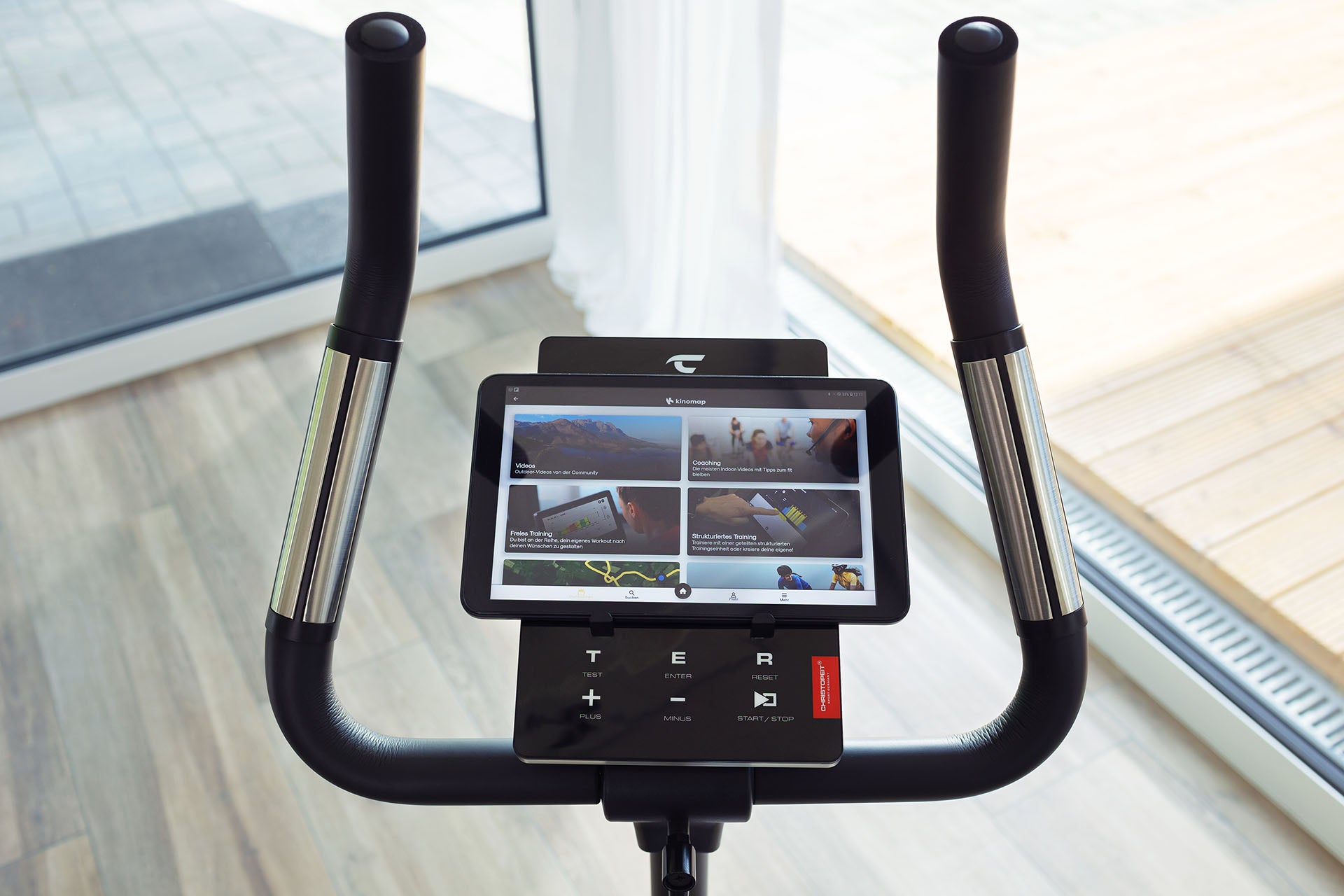 Lisäksi ET 6 -poljinergometrissä on Kinomap-toiminto. Tämä mahdollistaa hauskan ja vuorovaikutteisen harjoittelun Android- tai IOS-laitteilla ja harjoitustietojen tallentamisen.