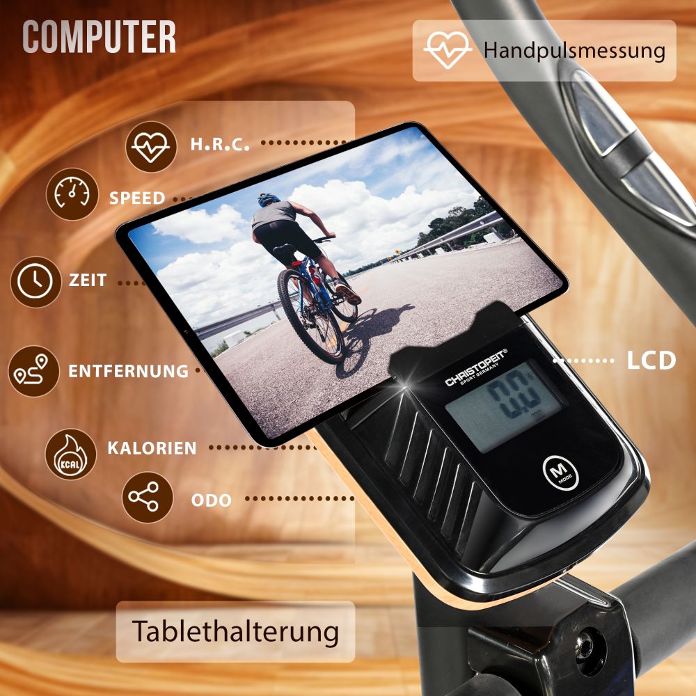 Nykyaikainen Christopeit HT 2.1 -pyöräilykouluttaja tarjoaa sinullemahdollisuuden treenata hiljaa ja tehokkaasti poistumatta kotoa.