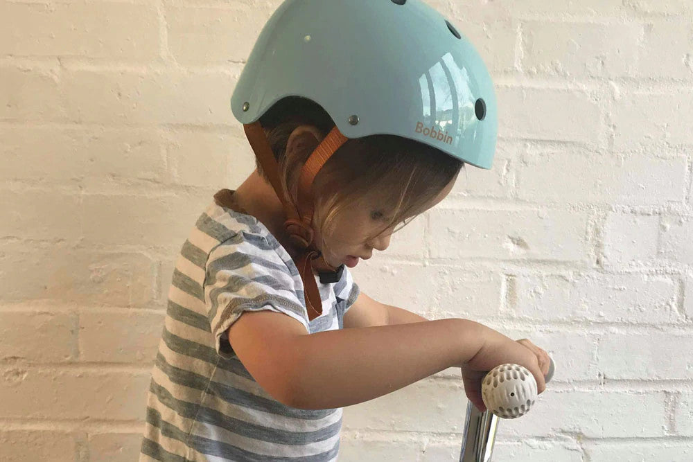 Tämä yksinkertainen, kiiltävä BobbinStarling Duck Egg Blue -kypärä on säädettävissä sisäpuolelta, hyvin tuulettuva ja niin kevyt, ettet edes huomaa sitä, kun ajat.
