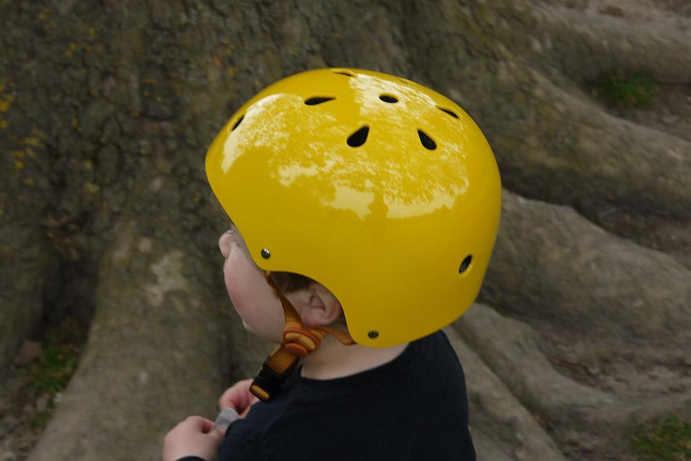Tämä yksinkertainen, kiiltävä BobbinStarling Yellow -kypärä on säädettävissä sisäpuolelta, hyvin tuulettuva ja niin kevyt, ettet edes huomaa sitä, kun ajat.