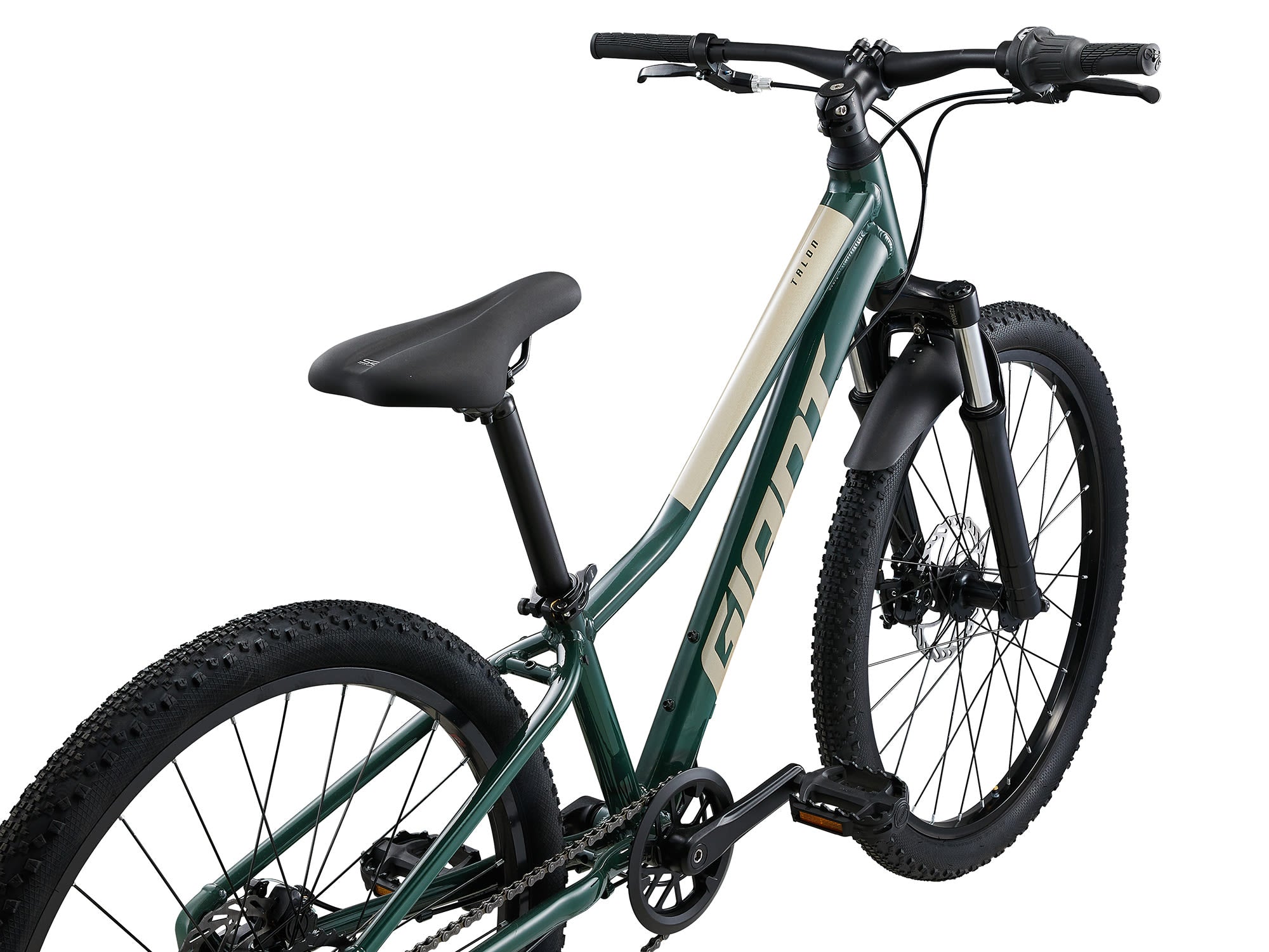 Tämä erityisesti lapsille suunniteltu Giant Talon 24 -maastopyörä tekee pyöräilystä helppoa ja hauskaa nuorille pyöräilijöille aina seikkailuista lähiympäristössä tai perheen kanssa metsäpoluilla. Runkogeometria ja lapsiystävälliset komponentit antavat varmuutta ja parempaa käsiteltävyyttä, jotta ajotaidot kehittyvät turvallisesti ja hauskasti. Lyhyempi satula, matalampi painopiste ja matalampi poikkipinnan korkeus luovat matalamman painopisteen, mikä lisää vakautta ja parantaa ohjattavuutta sorateillä ja metsäpoluilla, Pyörässä on myös etutörmäysvaimennin, joka parantaa hallintaa epätasaisessa maastossa. Kapeampi, halkaisijaltaan 25 mm:n ohjaustanko ja lyhyet jarruvivut tarjoavat paremman pidon ja ohjattavuuden pienille käsille. Lyhyemmät kampiakselit mahdollistavat pehmeämmän kampaamisen ja estävät polkimien osumisen maahan kaarteissa. Talon 24 on varustettu potkulaudalla, etulokasuojalla, ohjaustangon tyynynsuojalla ja kellolla - kaikki mitä tarvitset hauskaan ja helppoon päivittäiseen ajeluun kodin ympärillä.
