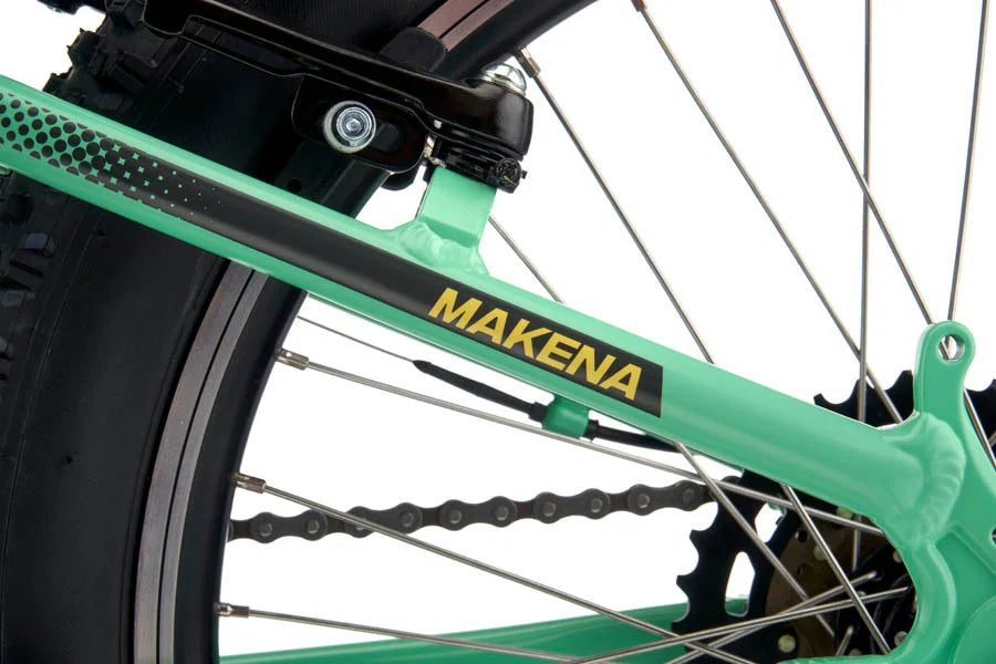 Pyöräily lapsena on äärimmäinen vapauden muoto. Makena on täydellinen ensimmäinen pyörä pienelle pyöräilijälle. Sen lapsiystävällisessä rungossa on 20-tuumaiset pyörät, joissa on paksut 2,6-tuumaiset renkaat, jotka takaavat vertaansa vailla olevan pidon. Samox-kahvat 28-hampaisilla hammasrattailla ja pyörän matala runko tekevät siitä sopivan pienille lapsille. Yksivaihteinen vaihteisto mahdollistaa vaihteiden vaihdon yhdellä kädellä ja antaa pienelle pyöräilijälle oikean pyörän tuntuman ja kokemuksen.