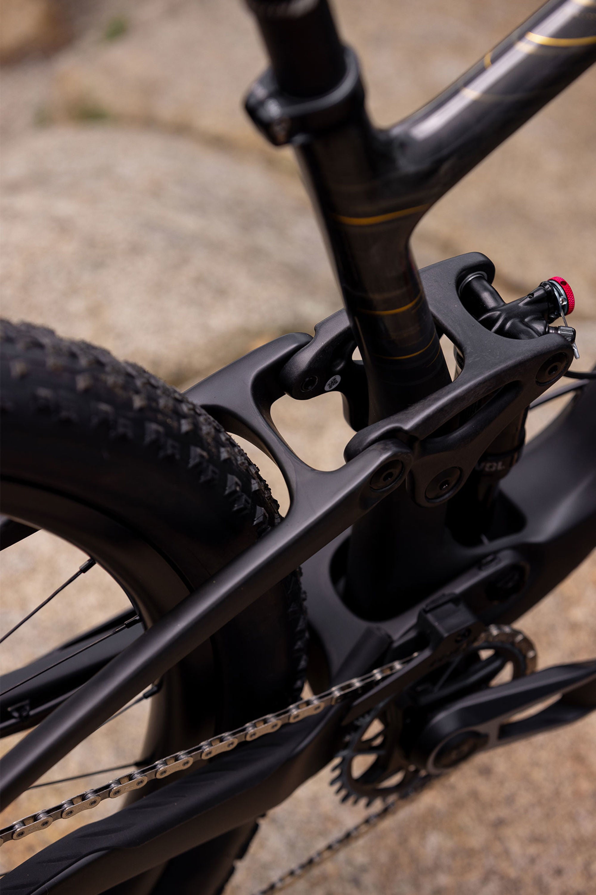- Frame: Edistyksellinen komposiittikomposiitti etu- ja takakolmio, 115 mm FlexPoint Pro -jousitus