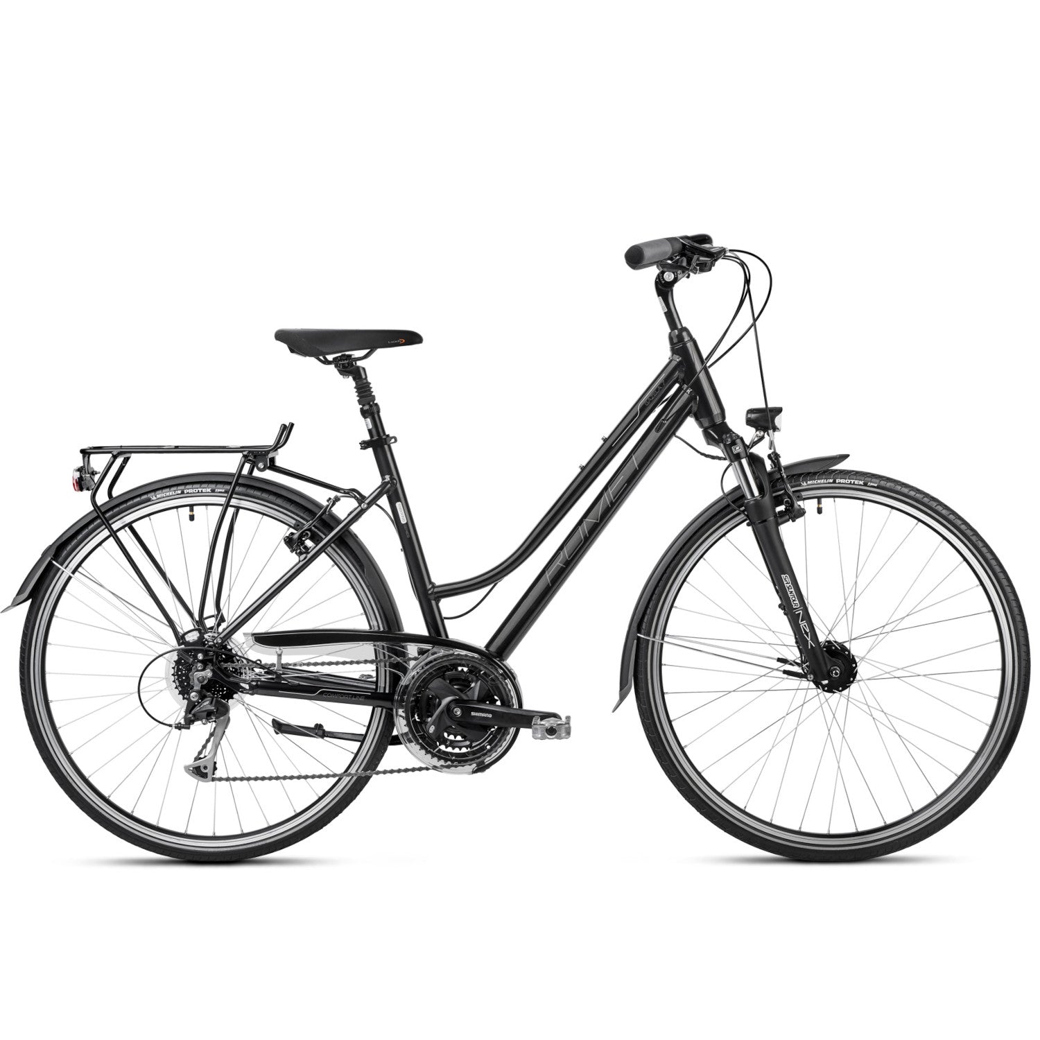 Monipuolinen ja houkutteleva Gazela 7 on kevyt mutta kestävä, tyylikäs mutta käytännöllinen. Se sopii täydellisesti jokapäiväiseen ratsastukseen tai retkeilyyn. Siinä on tavarateline, lokasuojat, etu- ja takavalot sekä potkulaite, joten siinä on kaikki, mitä käytännöllinen pyöräilijä tarvitsee. Sountour-haarukan 63 mm:n vaimentimet, 27-vaihteiset vaihteet ja Shimano V-jarrut takaavat mukavan, nopean ja turvallisen ajon.