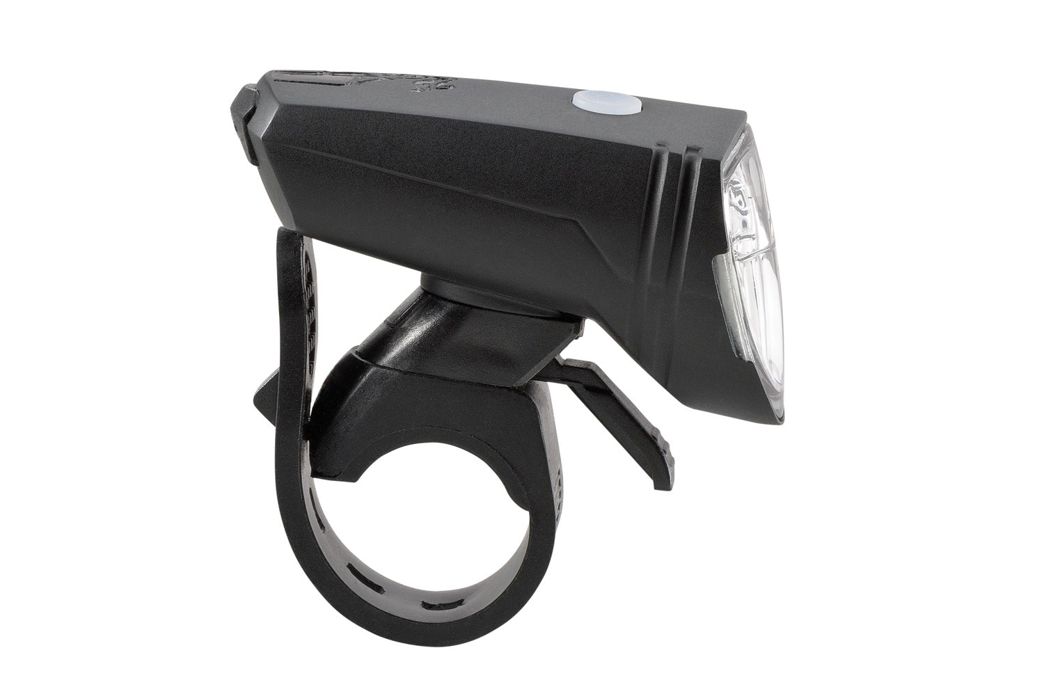 AXA Greenline 15 Lux -otsalamppu toimii kaikissa sääolosuhteissa -10 °C:sta +40 °C:een. Joustavan kumihihnan ansiosta se on helppo asentaa. Akku ladataan USB:n kautta, kaapeli mukana. Valaisimessa on myös alhaisen pariston merkkivalo.