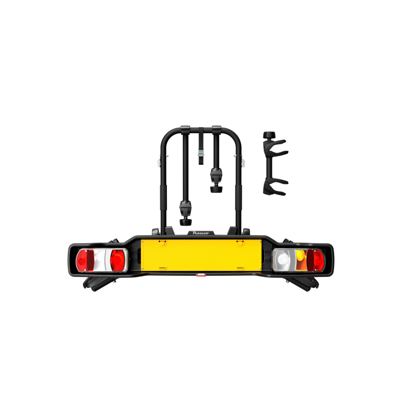 Yleiskäyttöinen vetokoukkuun kiinnitettävä polkupyöräteline Parma jopa neljälle polkupyörälle. Varustettu kiinnikkeillä toiselle, kolmannelle ja neljännelle polkupyörälle. Se on taloudellisin pikakiinnitysjärjestelmä.