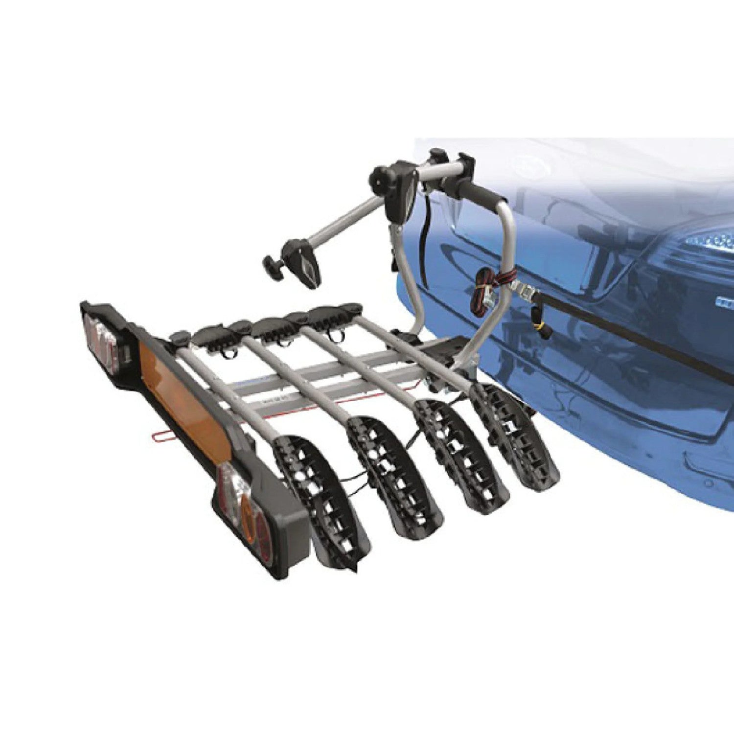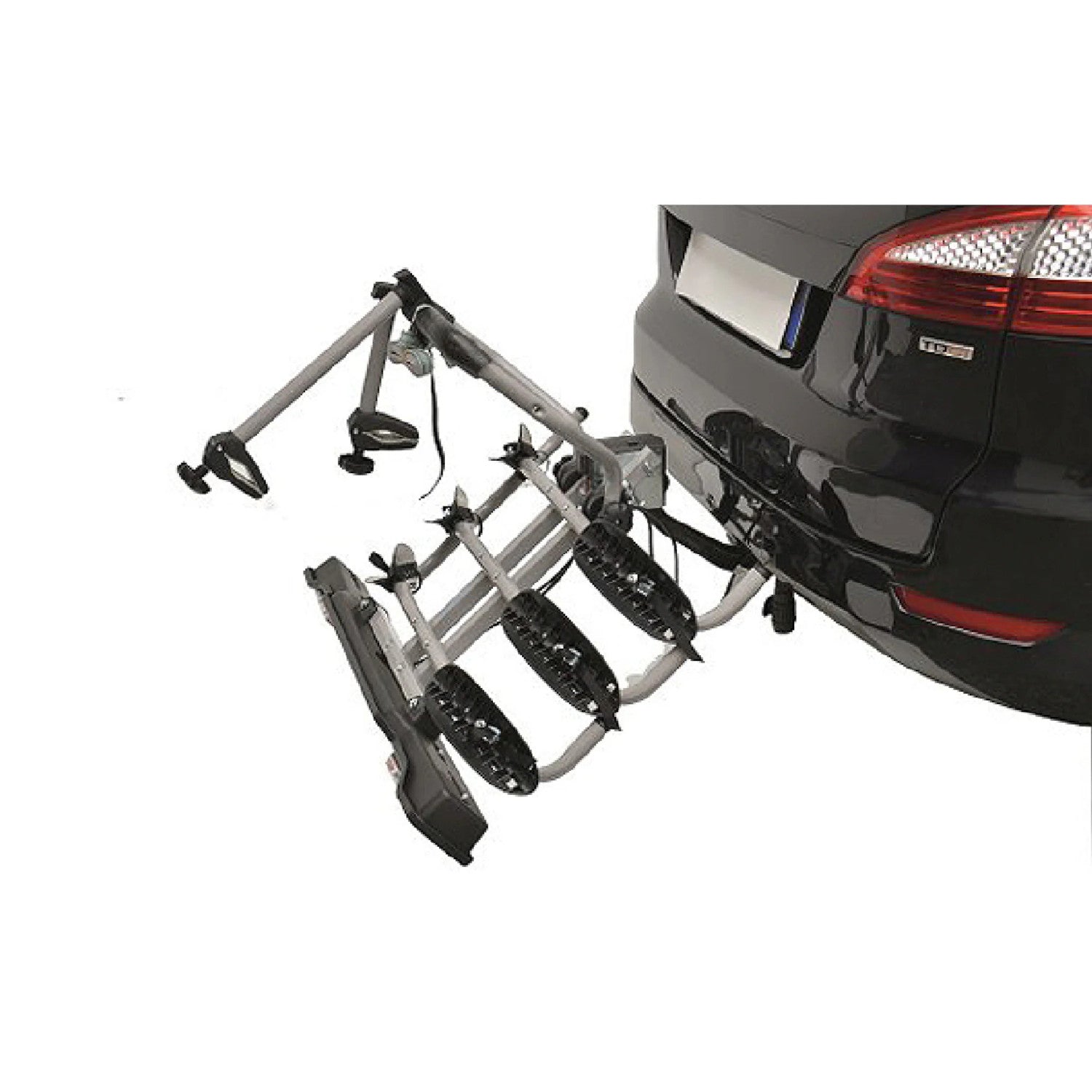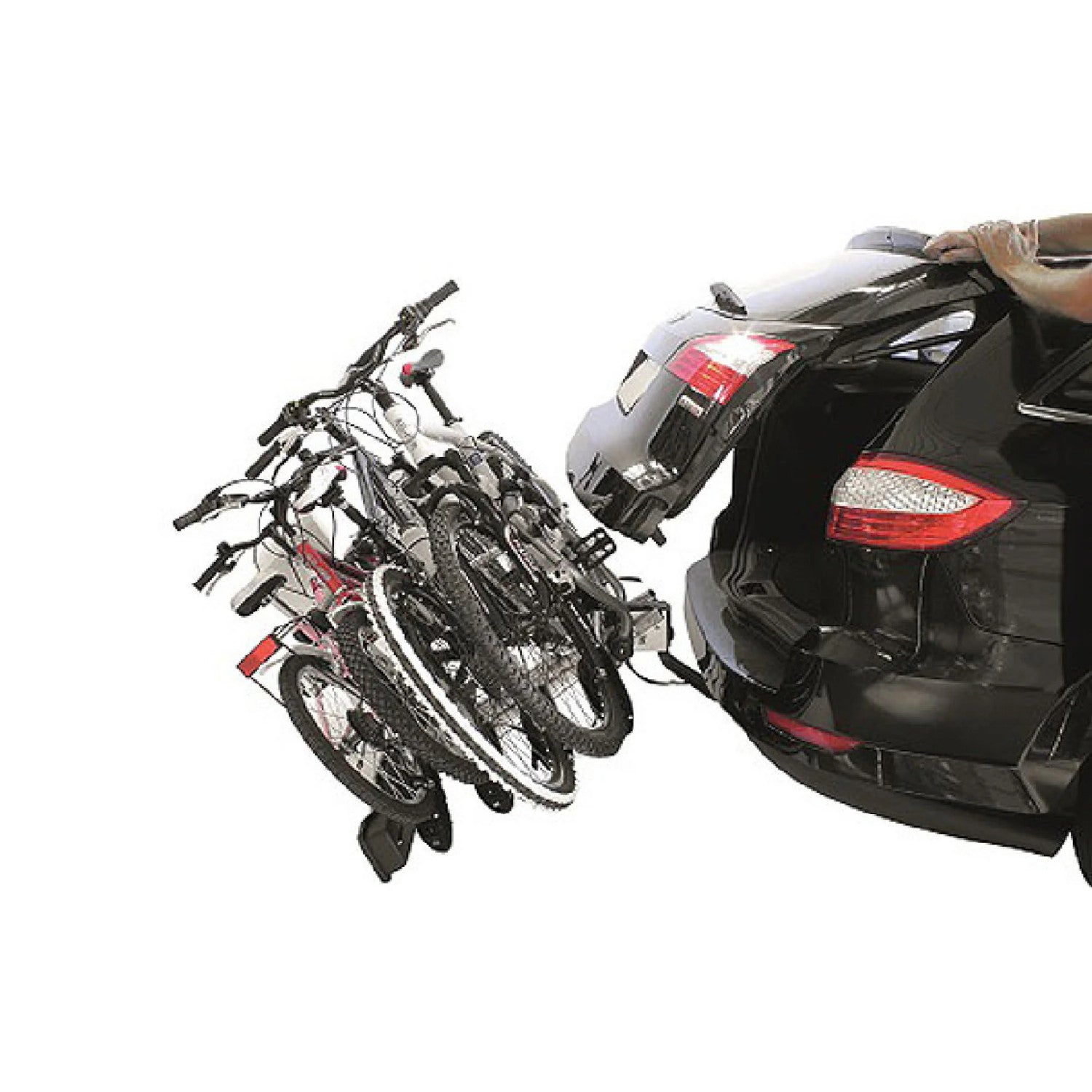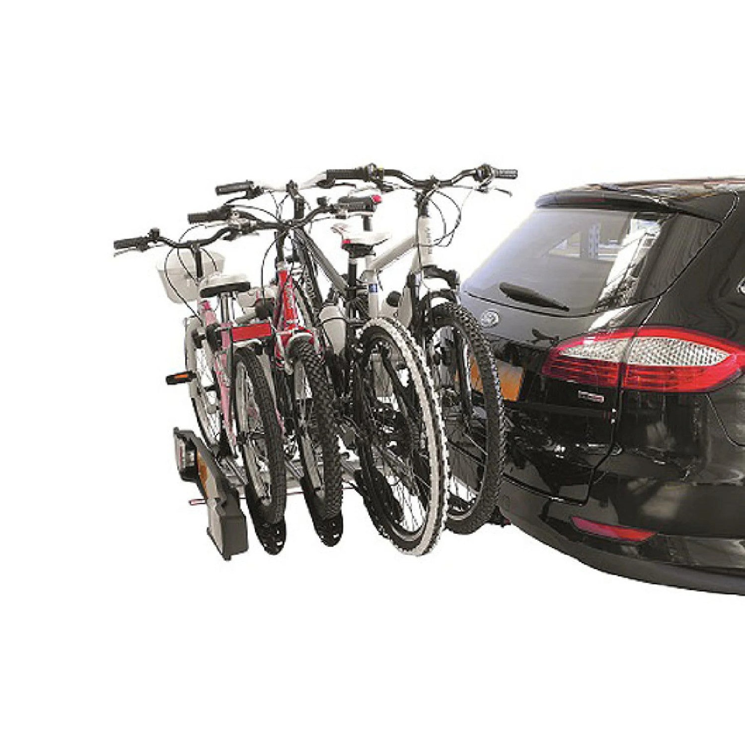 Yleiskäyttöinen vetokoukkuun kiinnitettävä polkupyöräteline Siena jopa neljälle pyörälle. Varustettu kiinnikkeillä toiselle, kolmannelle ja neljännelle polkupyörälle. Se on edullisin tyyppihyväksytty (homologoitu) polkupyöräteline.