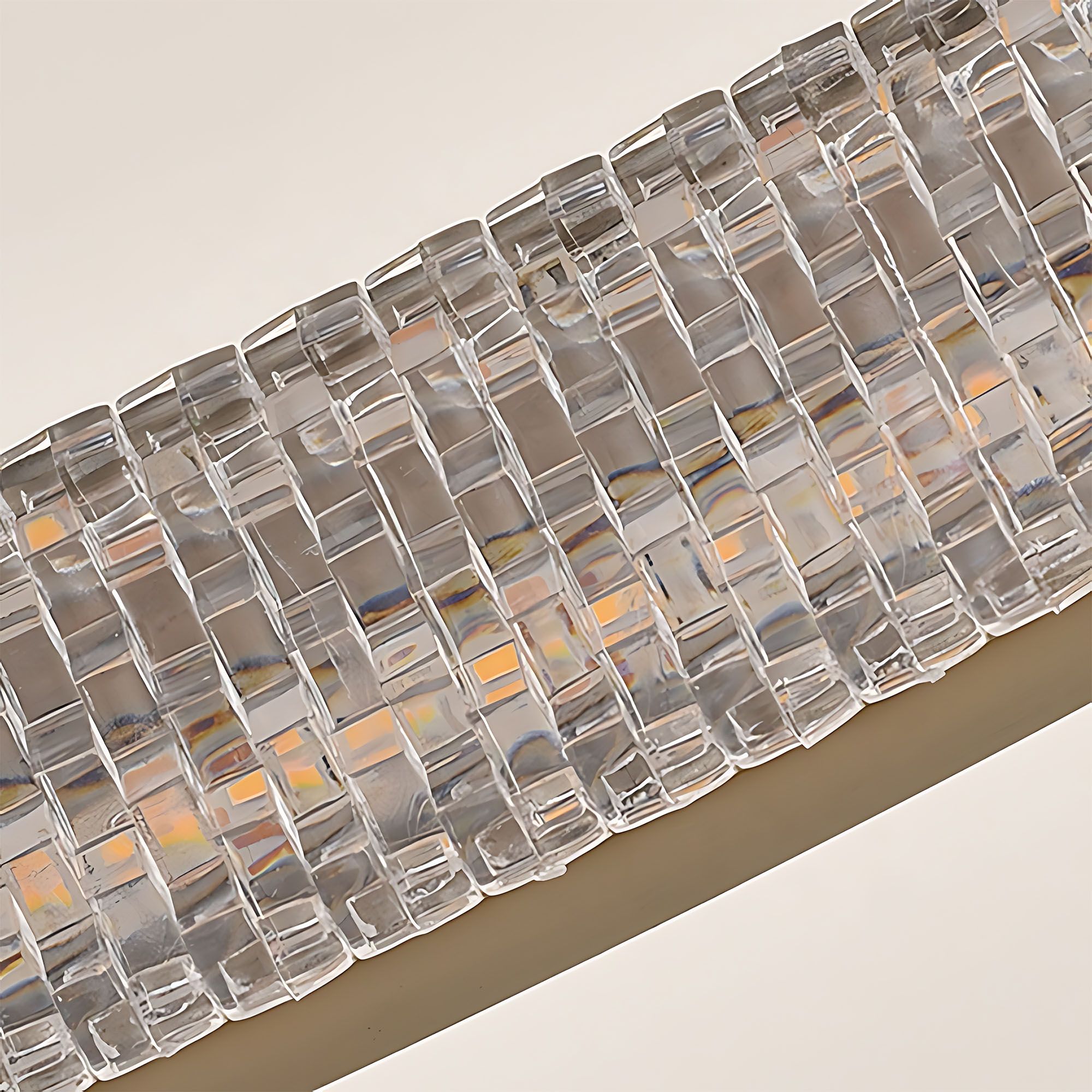 Pyöreä, kaksitasoinen kattokruunu yhdistää koristeellisen luonteen moderniin muotoon. Harjatun kullan värinen metallirengas, yhdistettynä kristallimaiseksi kuvioituun reunukseen, josta valo säteilee, on... Lue lisää