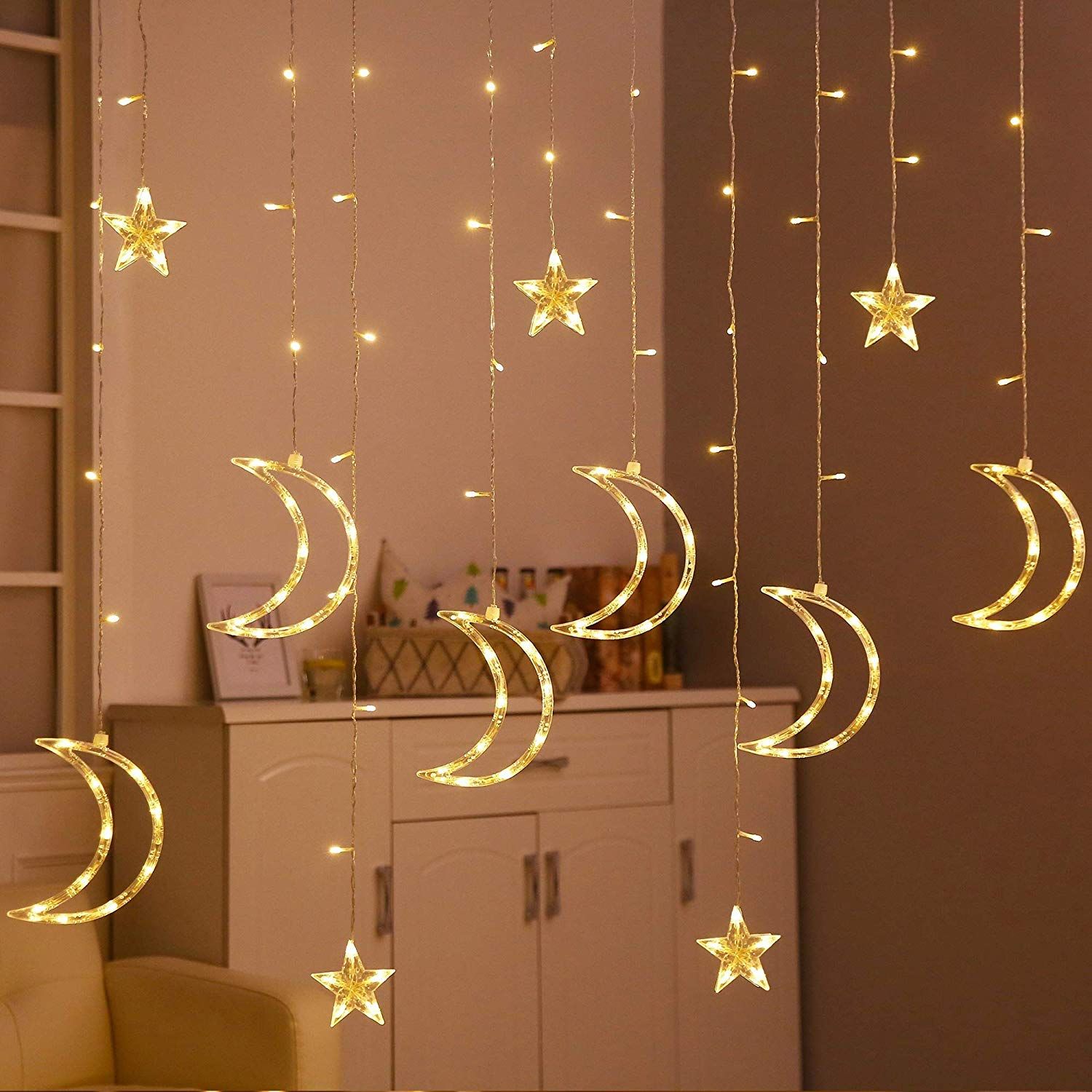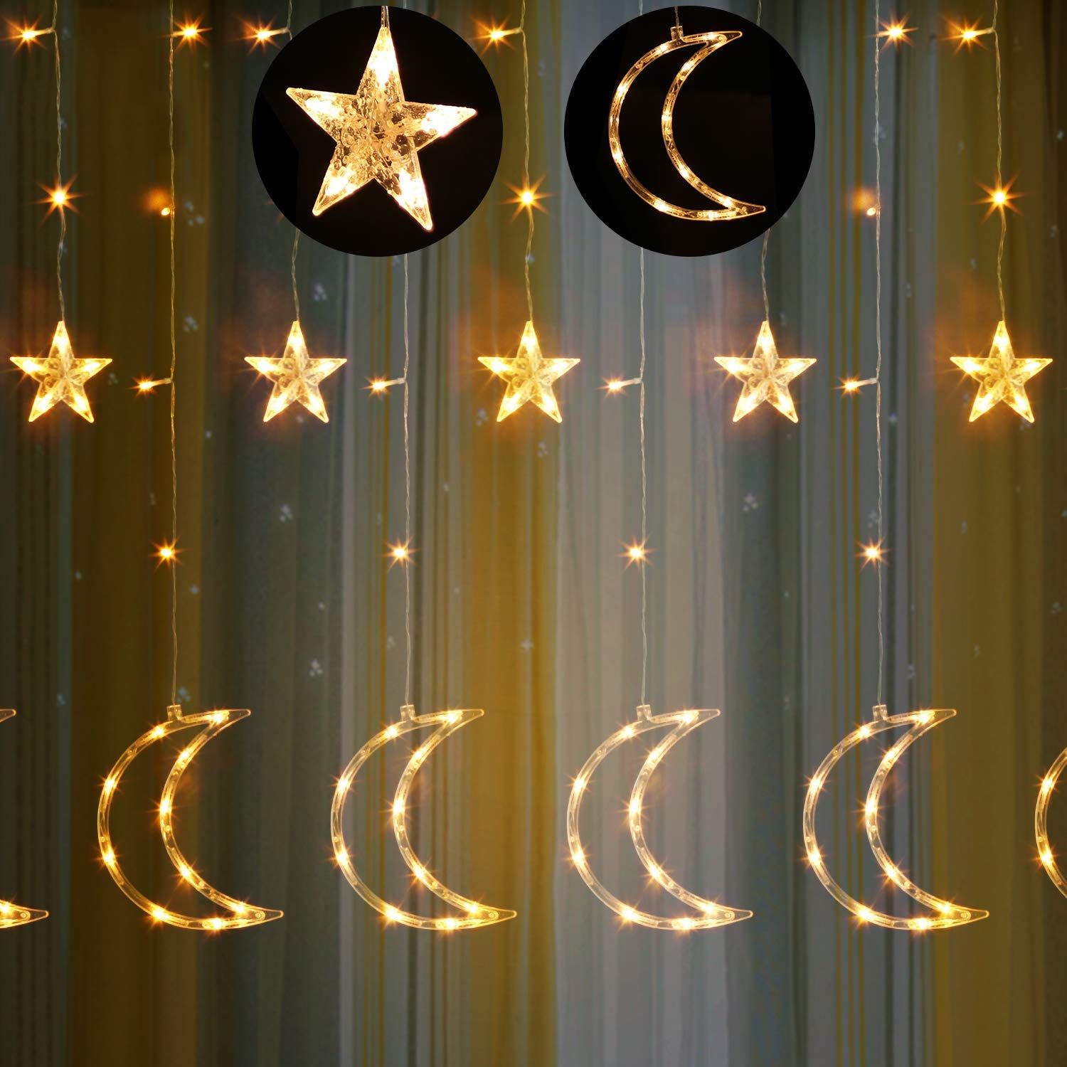 Joulukuusen valot LED-verho tähdet/kuut 2m