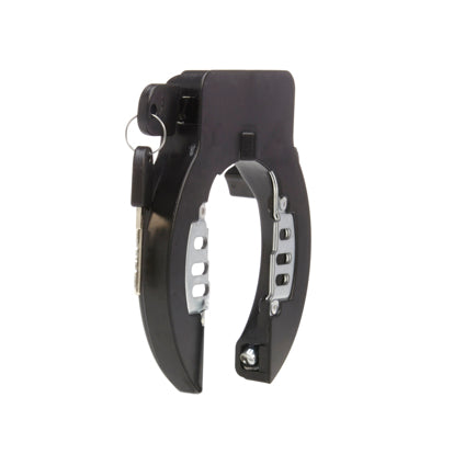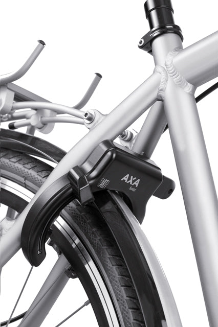 AXA Solid secure runkolukko. Kiinnitetään takatukivarteen. Mahdollisuus kiinnittää ketju/köysi lukkoon pyörän lukitsemiseksi paikallaan olevaan kohteeseen.
