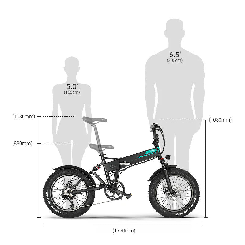 Fiido M1 Pro taittuva sähköpyörä on tehokas, kompakti ja kestävä. Pyörä saavuttaa 500 W:n (moottorin tehorajoitettu 250 W) moottorilla ja 7 vaihteella jopa 40 km/h nopeuden (nopeusrajoitus 25 km/h). Leveät, syväkuvioiset renkaat vievät sinut vaivattomasti kulkemaan vaikeakulkuiselta tuntuvassa maastossa, olipa se sitten mutaa, sohjoa, hiekkaa tai kiviä, ja etu- ja takarenkaat tekevät koko ajosta mukavan pehmeää. Suuren vääntömomentin omaava 48 V:n akkupaketti kiihdyttää nopeasti ja mahdollistaa jopa 130 km:n matkan yhdellä latauksella. Täysi lataus kestää vain 9 tuntia. Taittopyörälle ei tarvita paljon tilaa - Fiido M1 Pro mahtuu näppärästi auton tavaratilaan tai kodin eteiseen, junaan tai bussiin.