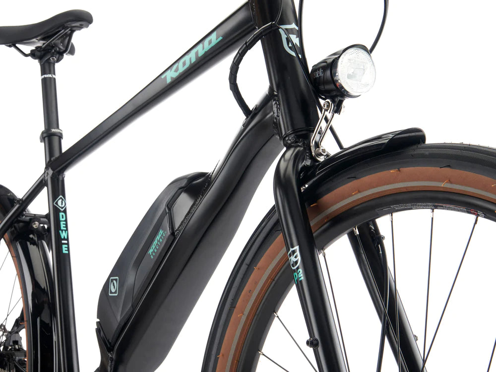 Kona Dew-E on määritellyt uudelleen, mitä jokapäiväinen pyöräily tarkoittaa pyöräilijöille ympäri maailmaa. Olemme kuulleet, että se on joskus paras osa töihin menoa. Rakastamme Dew-E:n ajo-ominaisuuksia ja sitä, että se auttaa vähentämään autolla liikkumista. Puoliksi integroitu akku pitää pyörän siistin näköisenä, ja Shimanon keskimoottori pitää hymyn jokaisen pyöräilijän kasvoilla, olipa tie kuinka pitkä tai mäkinen tahansa. Täydellinen pyörä puuterisuksien ja valojen kanssa, Dew-E on valmis nousemaan ja loistamaan!