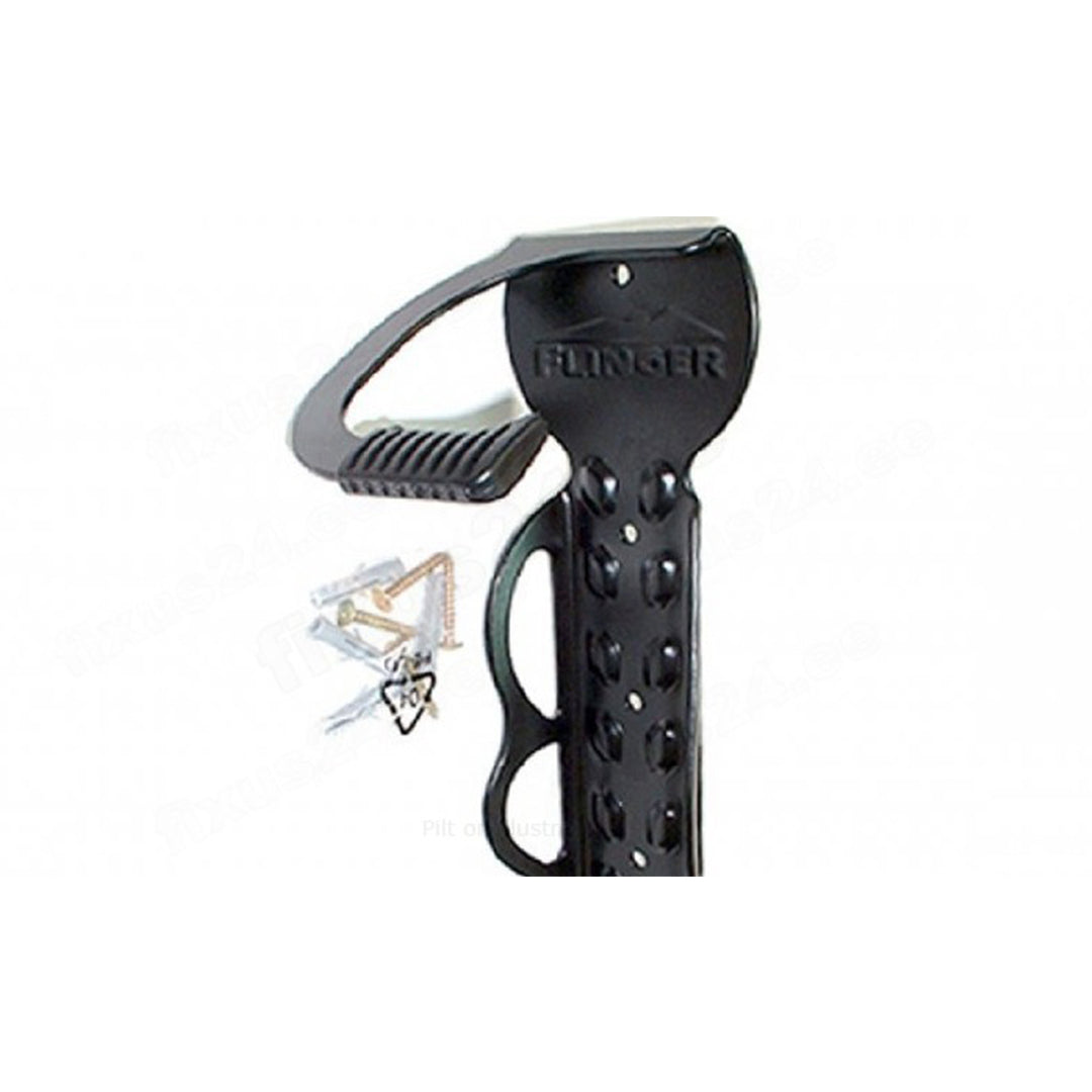 Seinälle kiinnitettävä polkupyöräteline FLINGER, jopa 61 mm renkaille, musta