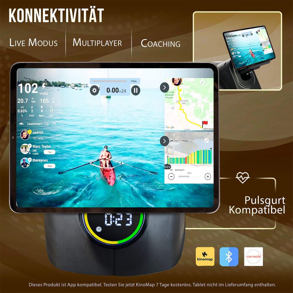 Ajoenergiamittari Christopeit Vico takaa täydellisen harjoittelun säästä riippumatta. Poljinergometrillä harjoittelu treenaa lähes kaikkia kehon lihaksia, erityisesti hartioita ja selkää, jotka jäävät usein huomiotta. Myös ydinlihakset. 32-portaisen jarrutusjärjestelmän ansiosta eri kuntotasoilla olevat ihmiset voivat harjoitella. Käyttäjäystävällinen LED-näyttö näyttää 7 keskeistä parametria yhdellä silmäyksellä. Laite on liitettävissä Bluetooth-yhteydellä.