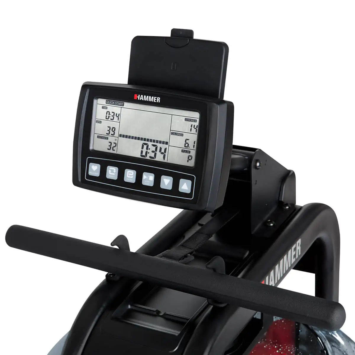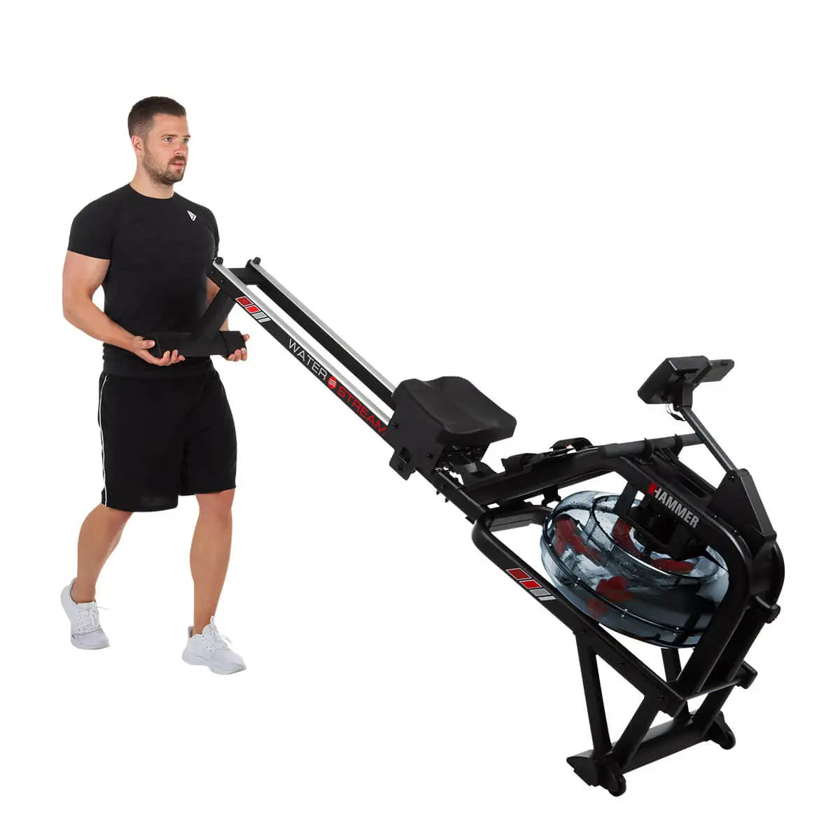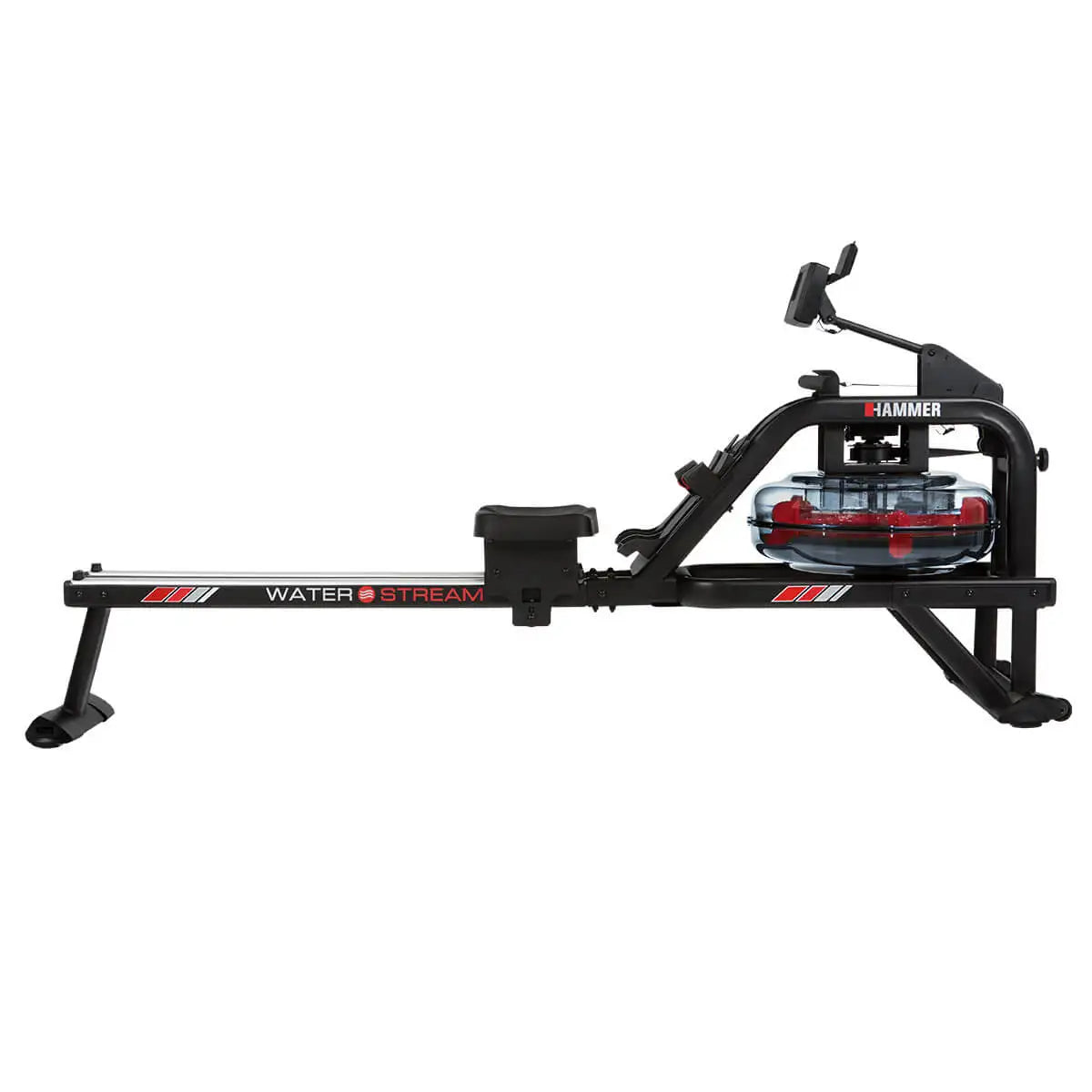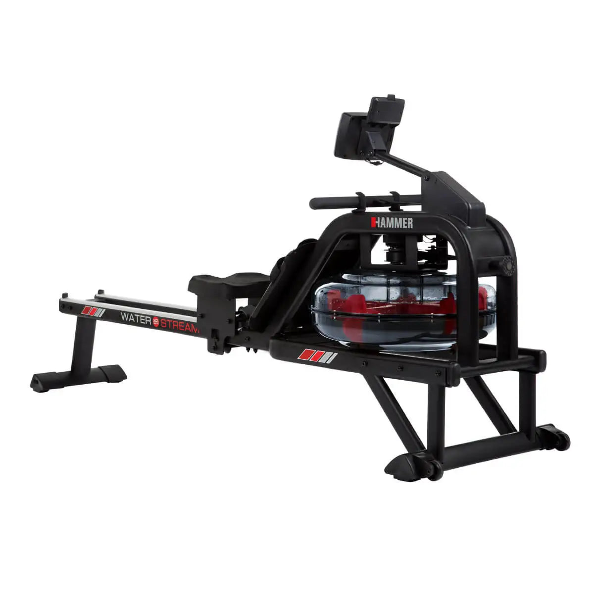 Hammer Water Stream -soutuergometrin avulla soutuharjoittelu on kuin oikeaa soutua säästä tai vuodenajasta riippumatta. Tämä pätee erityisesti siksi, että jarrutusjärjestelmä on aito veden vastus. Tämä soutuergometri jäljittelee vesivirran tuntua ja saa sinut tuntemaan, että olet vesistössä. Soutaminen on yksi tehokkaimmista harjoittelumuodoista, jossa voit harjoittaa koko kehoasi, polttaa paljon kaloreita ja parantaa iskuasi. Lisäksi soutu vaikuttaa myönteisesti henkiseen hyvinvointiisi, sillä on rauhoittava, meditatiivinen ja rentouttava vaikutus, joka auttaa selviytymään stressistä. 18 erilaista harjoitusohjelmaa tarjoavat vaihtelua ja motivaatiota liikuntaan. Kompaktien mittojensa ansiosta Water Stream -soutuergometri ei vie paljon tilaa, mutta sopii kuitenkin jopa 195 cm pitkille harjoittelijoille.
