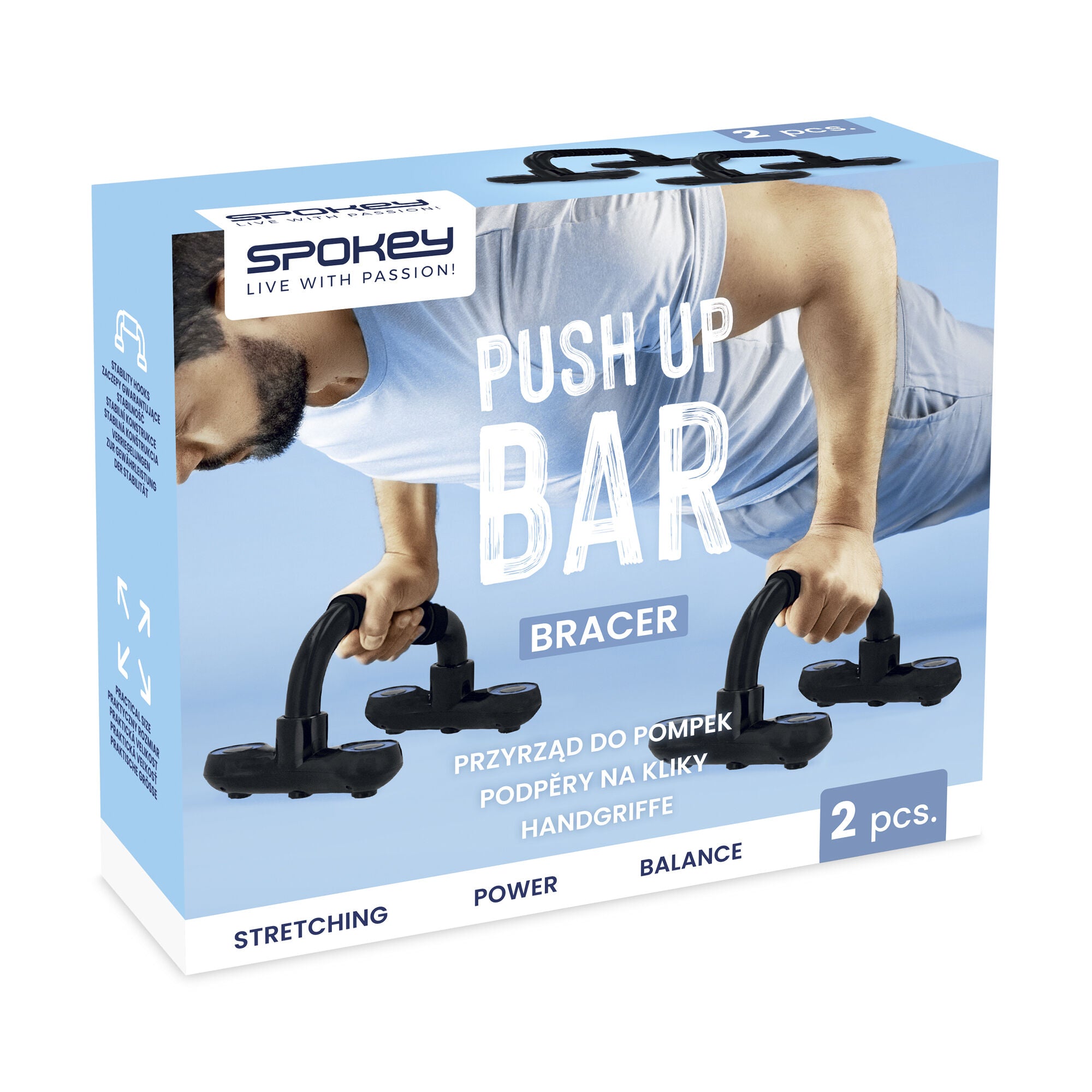 Spokey BRACER -punnerrustuet on valmistettu kestävästä, liukumista estävästä materiaalista, jonka ansiosta voit suorittaa harjoitukset oikeassa asennossa,
