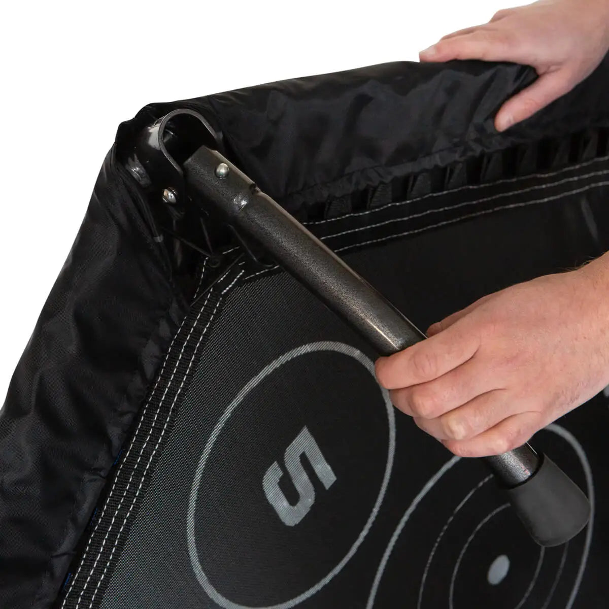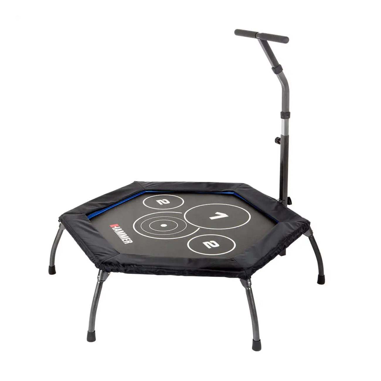 Hammer Cross Jump -maila tekee painonpudotuksesta helppoa ja hauskaa. Kuntotrampoliinilla harjoittelu on jo itsessään haaste, ja siksi se on nopea tapa laihtua. Hyvin treenattu pakara, hoikat jalat ja vahvat ydinlihakset saavutetaan helposti tällä trampoliinilla. Jotta myös ylävartalon lihakset treenautuisivat, kannattaa treeniin ottaa mukaan pieniä käsipainoja. 1000 kilokalorin polttaminen tunnissa ei ole ongelma tällä trampoliinilla! Trampoliinin jalat ovat kokoontaitettavat, joten voit sijoittaa trampoliinin pois näkyvistä, kun et treenaa.