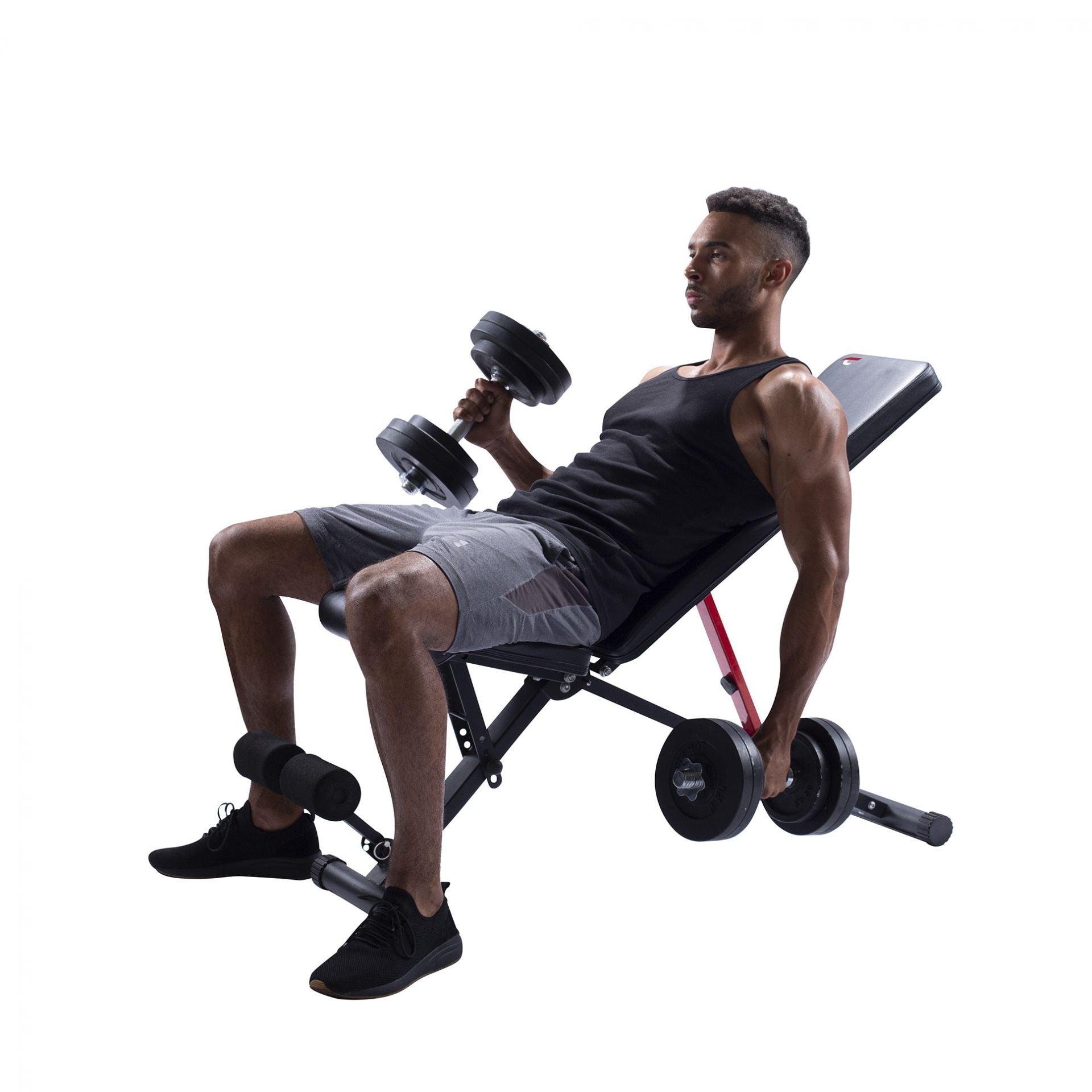Pehmustettu pinta on päällystetty kestävällä, korkealaatuisella keinonahalla. TB 2000 voi kantaa enintään 120 kg:n painon lisäpainojen kanssa. Istuin ja jalkatuet ovat monisäätöisiä, ja 8-suuntaisesti säädettävän selkänojan avulla voit löytää optimaalisen harjoitusasennon eri harjoituksia varten.