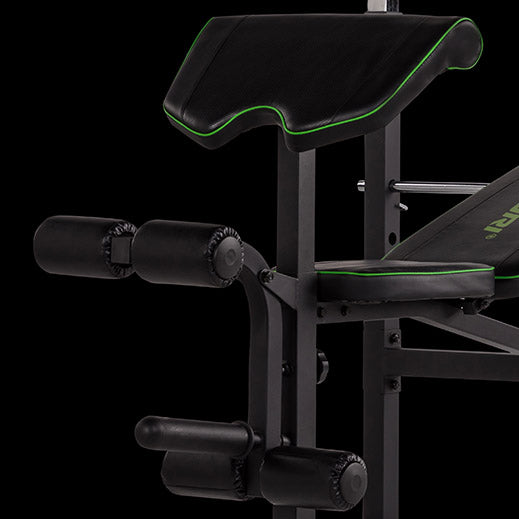 Monipuolinen jalka- ja hauislihasharjoittelulaite - Painopenkki on varustettu monikäyttöisellä käsivarsi- ja jalkaharjoittelulaitteella edessä. Voit käyttää tätä harjoitinta tukevilla ja tukevilla otteilla turvallisen ja hallitun harjoittelun takaamiseksi. Näin treenaat myös jalkalihaksia. Käsivarsi- ja jalkatreenaaja on päällystetty vahvalla vaahtokumilla ja vinyylillä käsivarsien ja jalkojen suojaamiseksi.