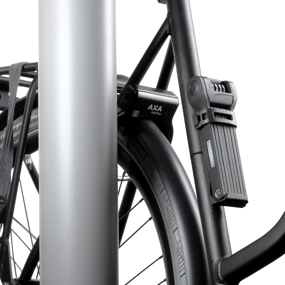 Axa Fold Lite C100 on kevyt kokoontaitettava lukko, joka soveltuu erinomaisesti jokapäiväiseen käyttöön paikoissa, joissa varkausriski on pieni - esimerkiksi kylässä, vartioidussa pyöräparkissa tai lyhyellä pysähdyspaikalla. Lukon mukana tulee kätevä pidike, joka voidaan kiinnittää pyörän rungossa olevaan juomapullotelineeseen. Jos sellaista ei ole, pidike voidaan kiinnittää suoraan runkoon mukana toimitettujen hihnojen avulla. Älykkään kolinanestomekanismin ansiosta lukko ei kolise epämiellyttävästi ajon aikana. Fold Lite on 100 cm pitkä, ja siinä on joustavat jalat, joiden avulla pyörä on helppo kiinnittää pylvääseen tai aitaan. Karkaistujen teräslenkkien halkaisija on 5 mm, ja ne on päällystetty kumikuorella, joka suojaa pyörää naarmuilta.