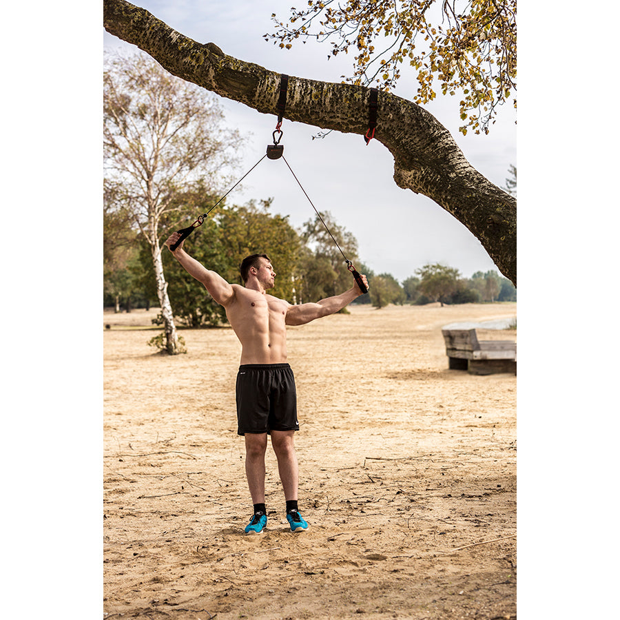 Treenaa rannalla, metsässä tai sisätiloissa, kaikki on mahdollista Tunturi Pro Suspension -harjoittelusarjan avulla. Sarja sisältää erilaisia harjoitusvälineitä, joilla voit treenata omaa kehonpainoasi. Voit kiinnittää laitteet esimerkiksi oveen, puuhun tai tankoon. D-renkailla varustetut pitkät pääjouset muodostavat pohjan, jota voit täydentää renkailla, kahvoilla tai jalkahihnoilla. Voit helposti pidentää tai lyhentää roikkuvaa harjoittelulaitetta kiinnittämällä lisävarusteita toiseen D-renkaaseen. Mukana tulevan kattilan avulla voit tehdä liikkuvia riippuharjoituksia.