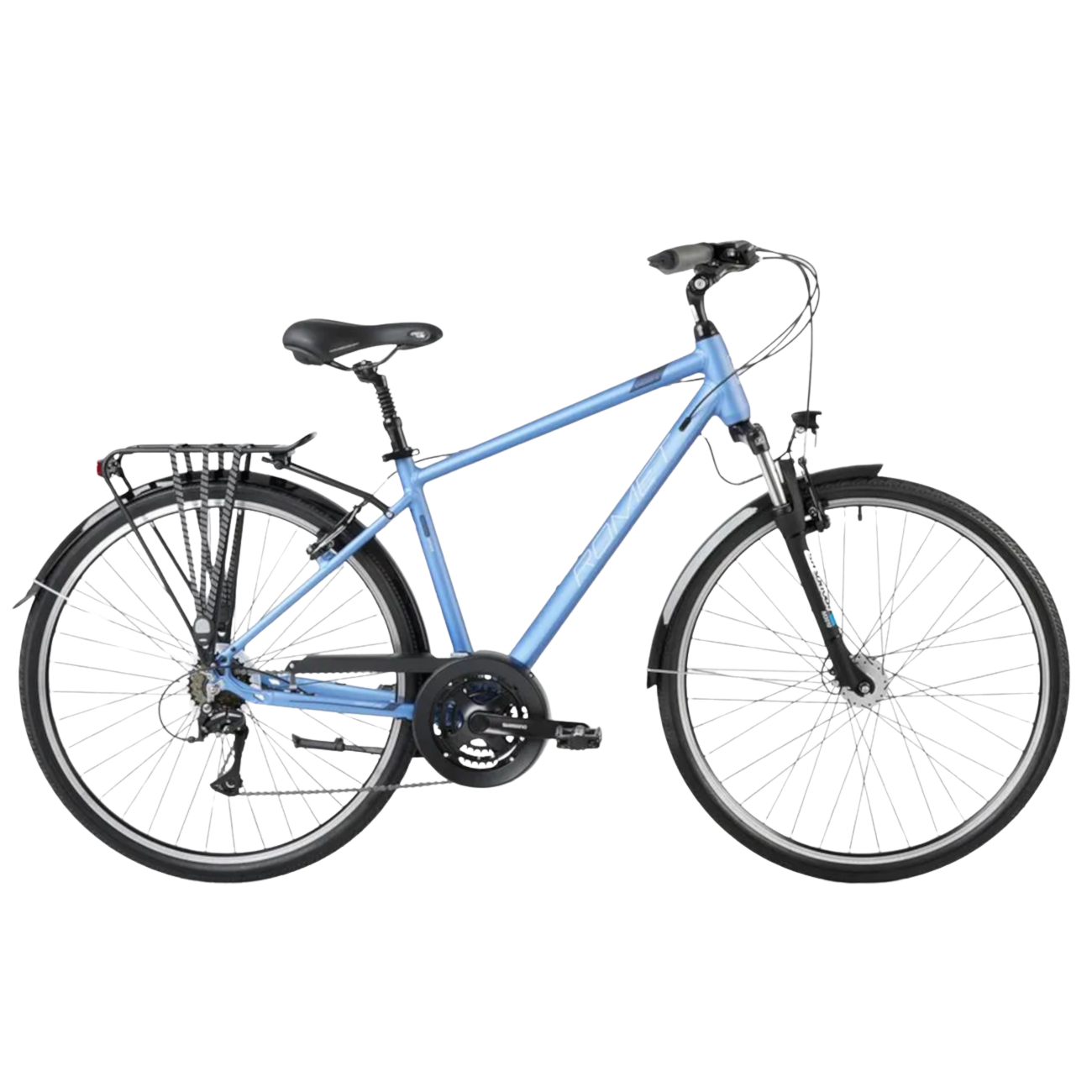Lisävarusteiden ansiosta Wagant 3 on erittäin monipuolinen pyörä. Pakkausrunko, lokasuojat sekä etu- ja takavalot tekevät siitä luotettavan kumppanin jokapäiväisiin ajoihin ja pitkiin vaelluksiin. Suntour-iskunvaimentimen ansiosta se kulkee hyvin asfaltilla ja kaikkialla muualla. Wagant 3 -hybridipyörässä on 21 vaihdetta ja V-jarrut, ja siinä on myös ohjauskulman säätö.