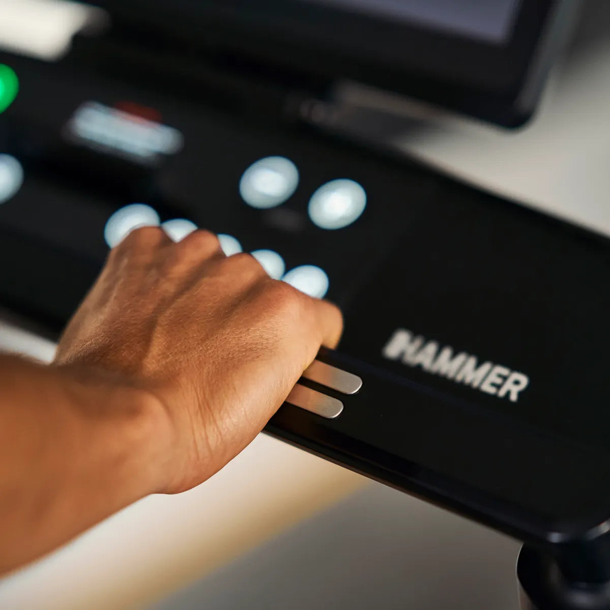 Hammer Q.VADIS 12.0 NorsK -juoksumatto vie kotiharjoittelusi uudelle tasolle. Laadukas tammella päällystetty runko sulautuu harmonisesti kotiisi. Motivaatiota tuovat 15,6 tuuman kosketusnäyttö, johon on esiasennettu sovelluksia, kuten Kinomap, ja liitettävyys Zwiftiin. Ainutlaatuinen pystysuora taitto säästää tilaa, ja 6-pisteinen pehmustejärjestelmä varmistaa, että juokseminen ja käveleminen on nivelille hellävaraista.