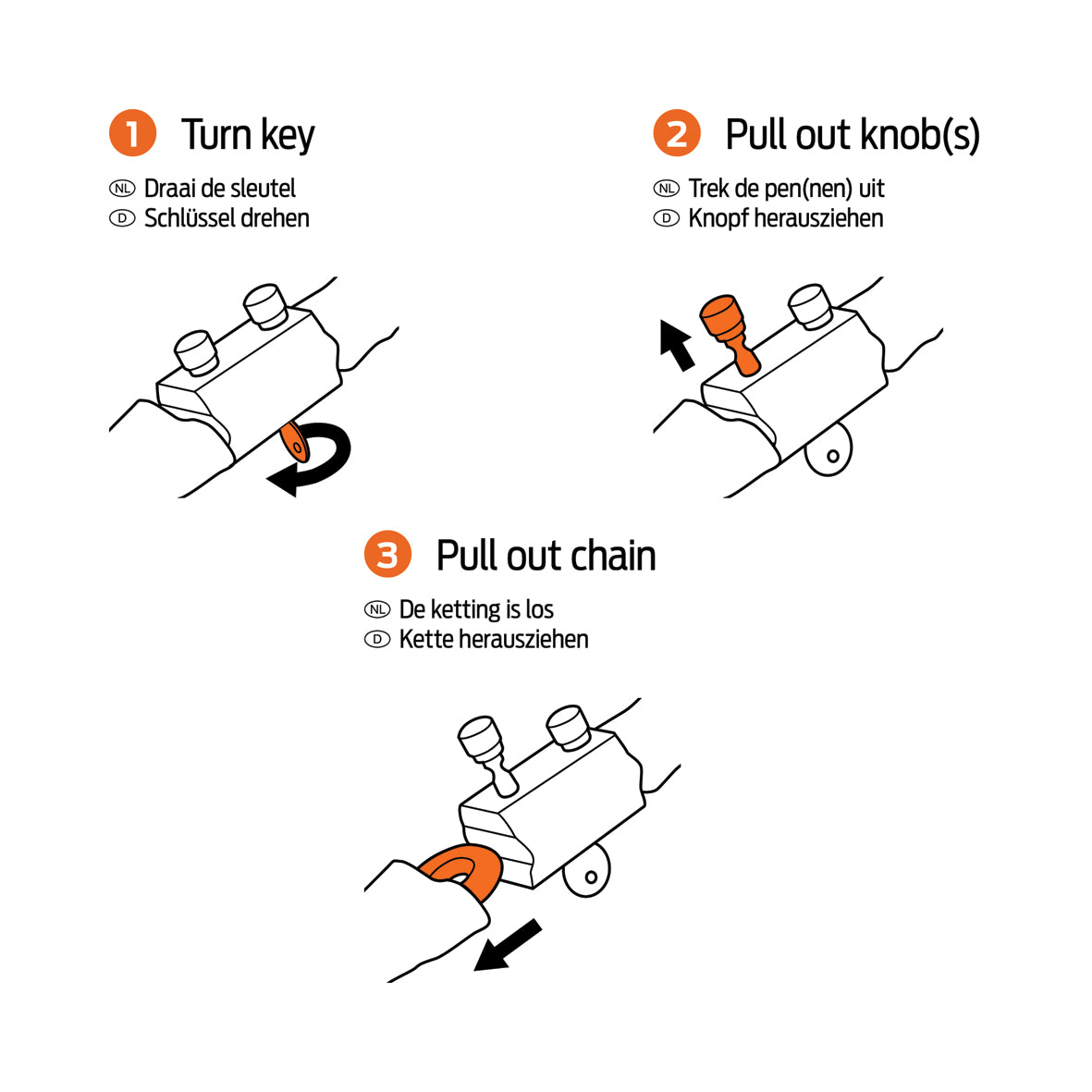 Ketjun pituus on 100 cm ja lenkkien halkaisija on 8 mm. Mukana on 3 avainta, mutta ei avainten huoltoa. Musta holkki suojaa pyörääsi naarmuilta.