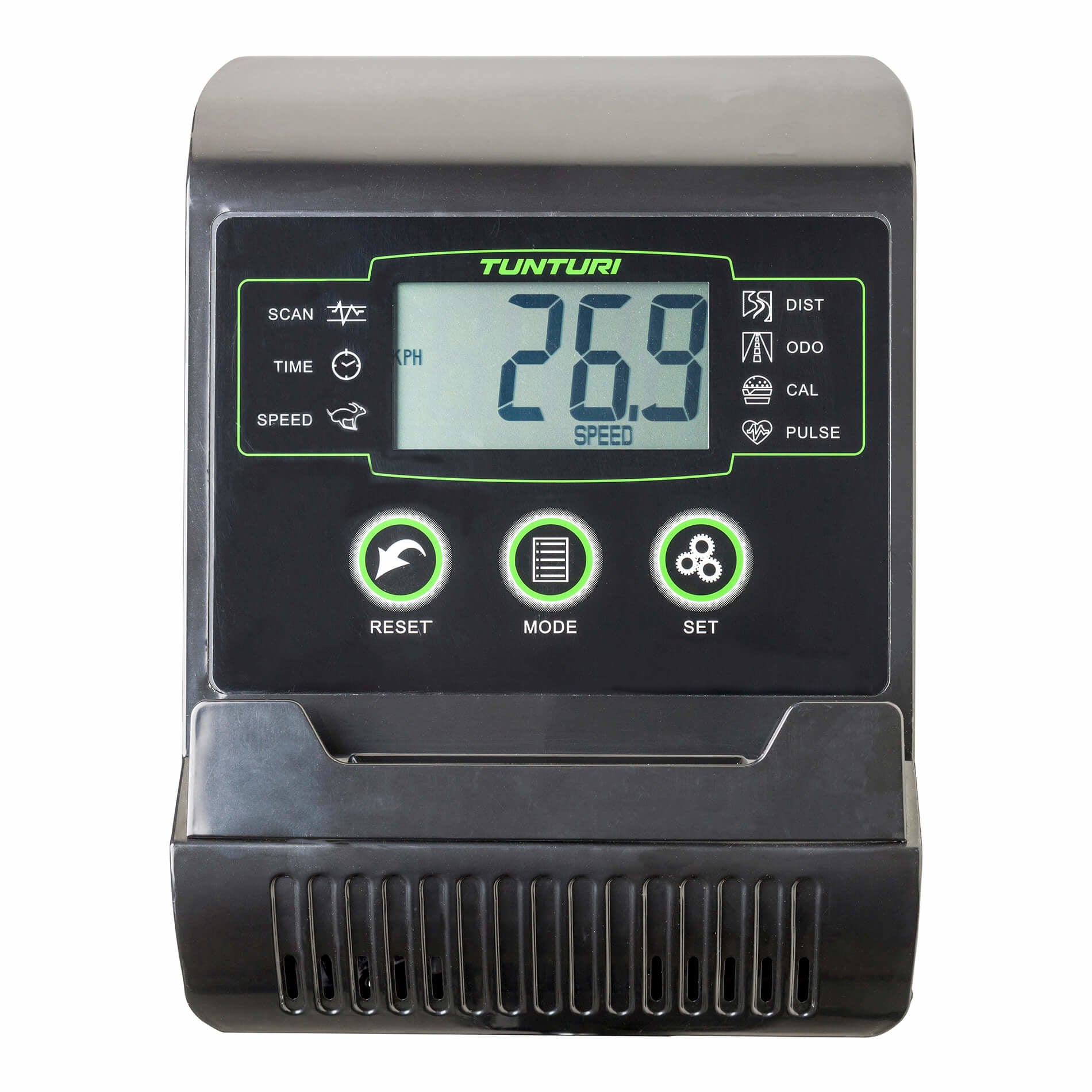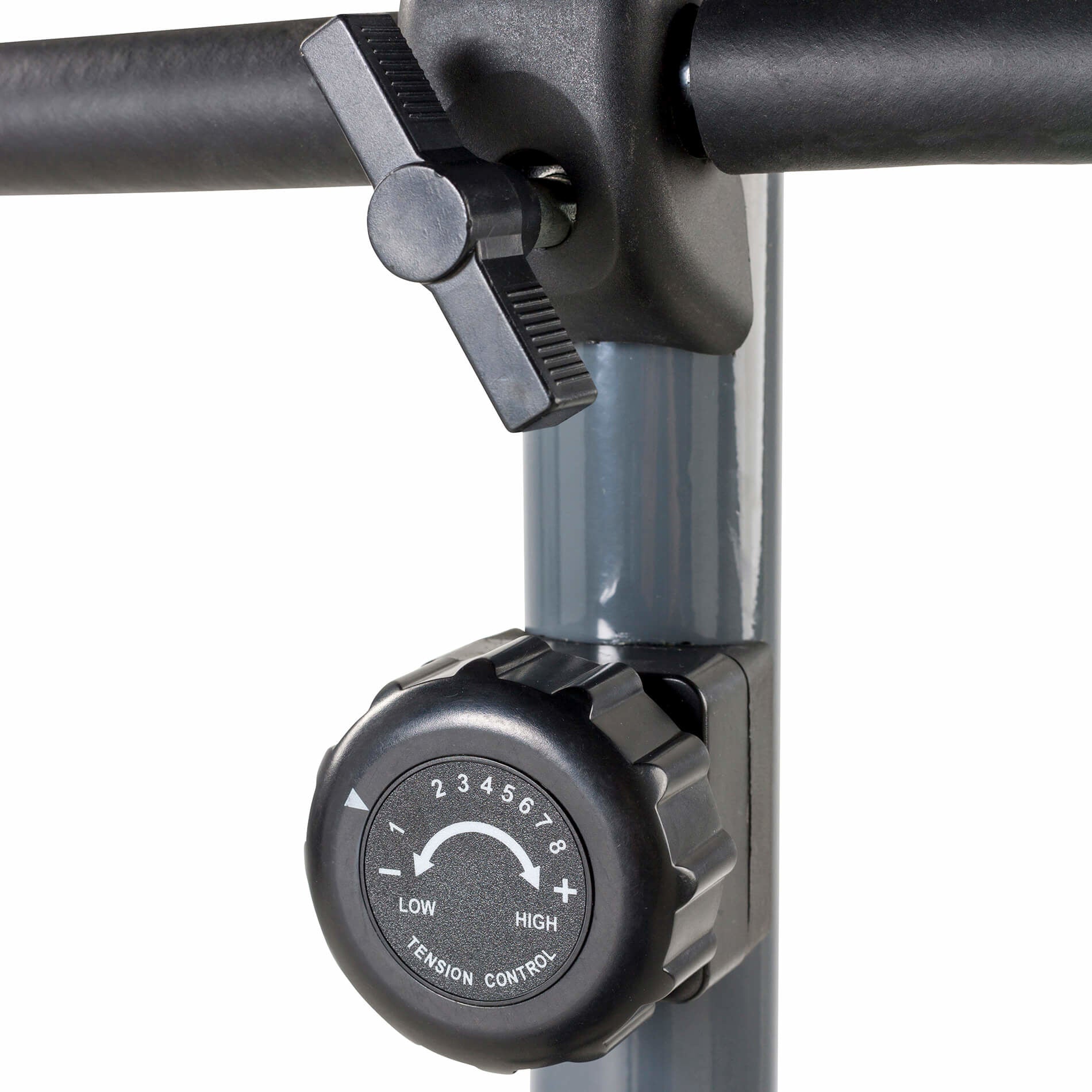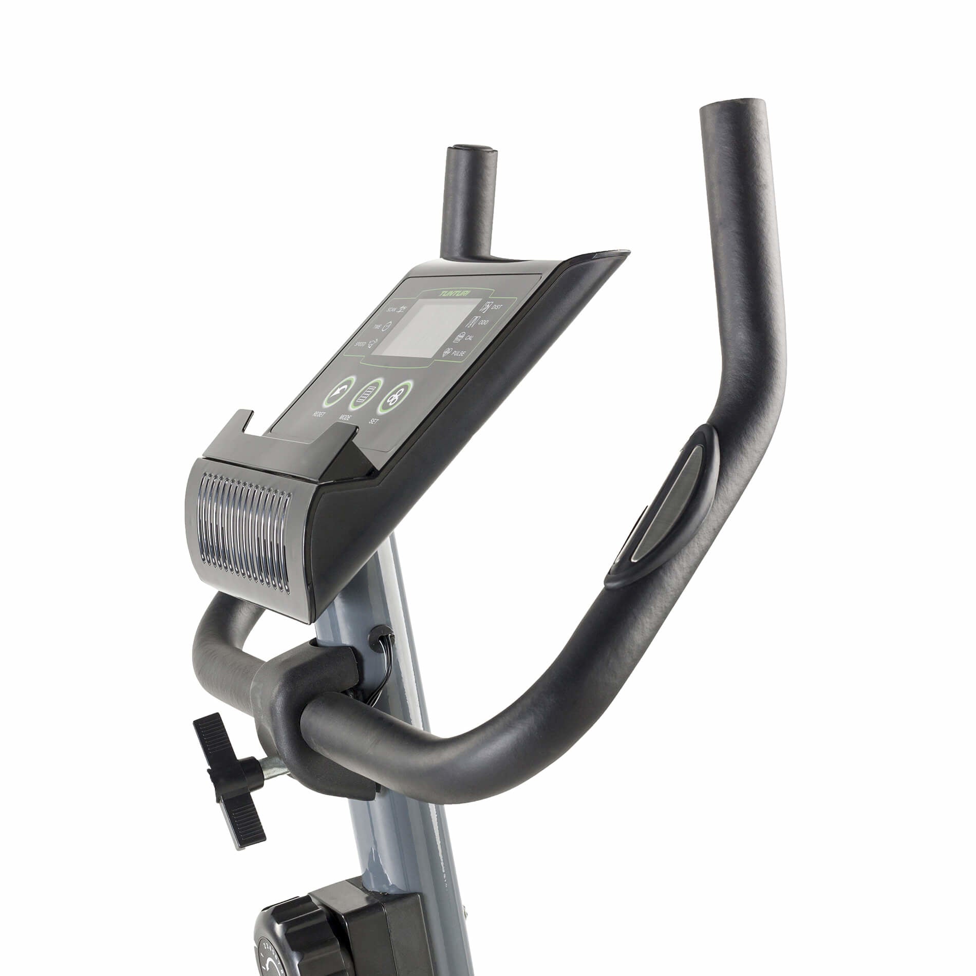 Esteen säätäminen. Voit treenata eri tasoilla valitsemalla 8 kuormitustasoa: käännä vastuksen säädintä ohjaustangon alla ja polje yksinkertaisesti.