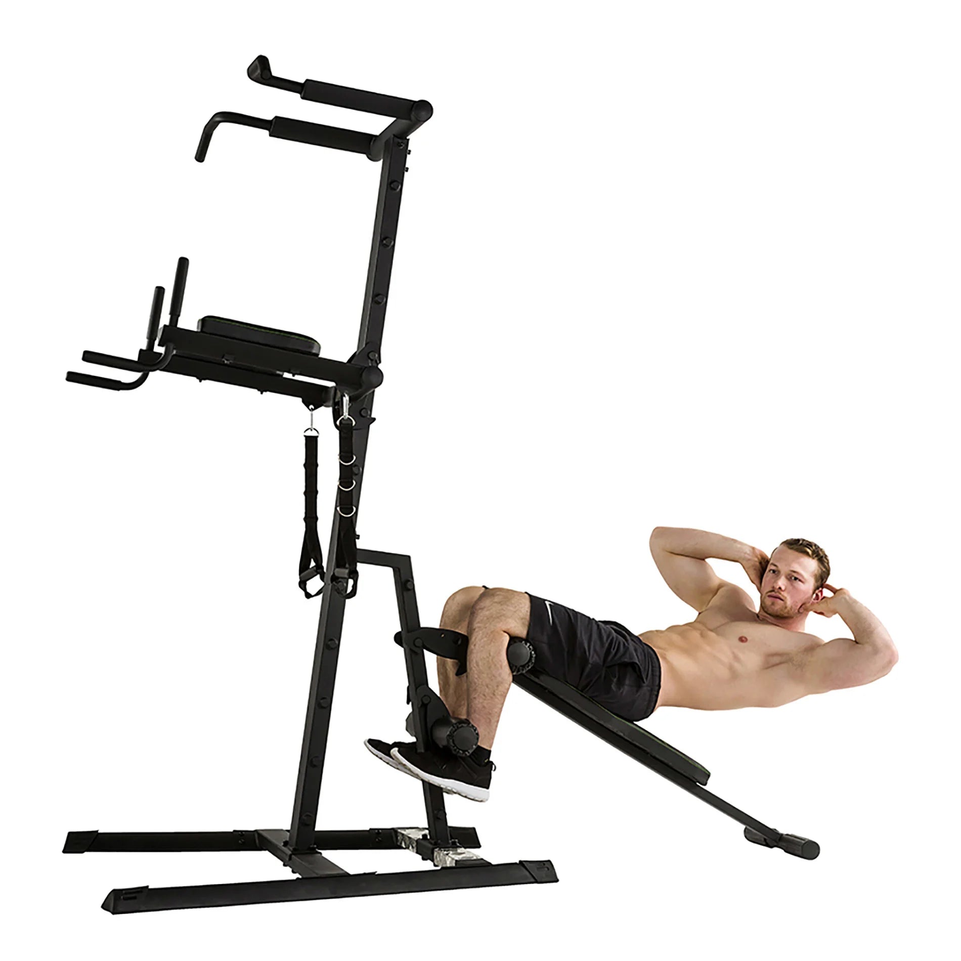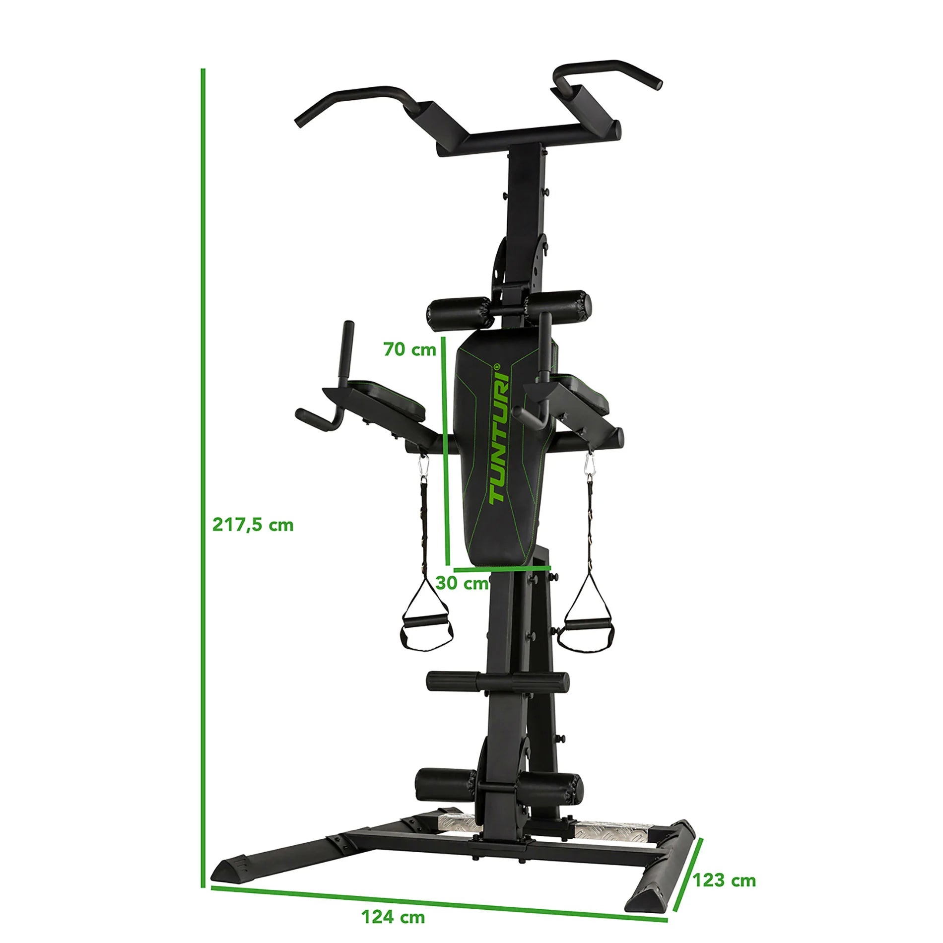 - Vatsalihasharjoittelulevy on irrotettava ja sen voi ripustaa voimaharjoitteluasemaan tilan säästämiseksi.
