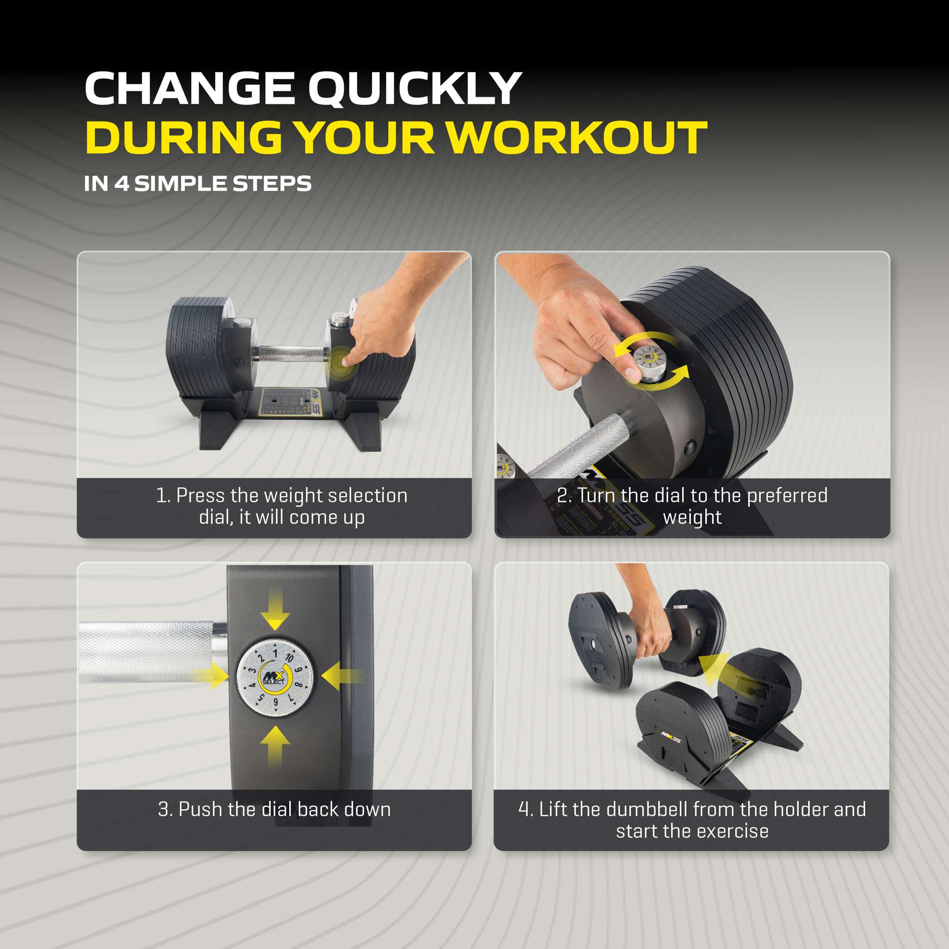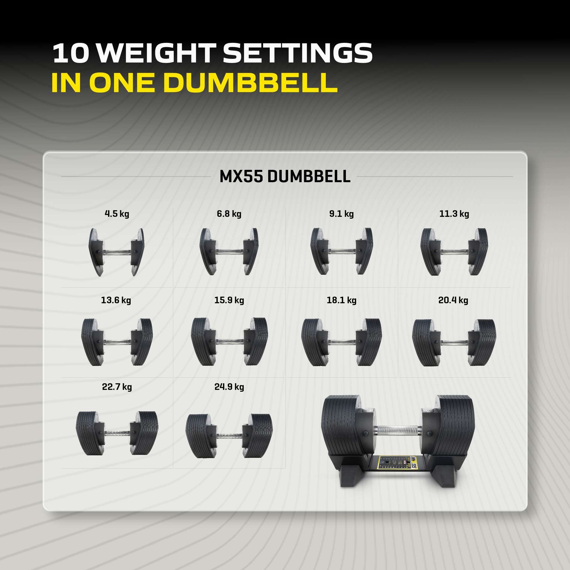 Säädettävä käsipaino TUNTURI MX55 käsipaino 4,5-24,9 kg, pyälletty