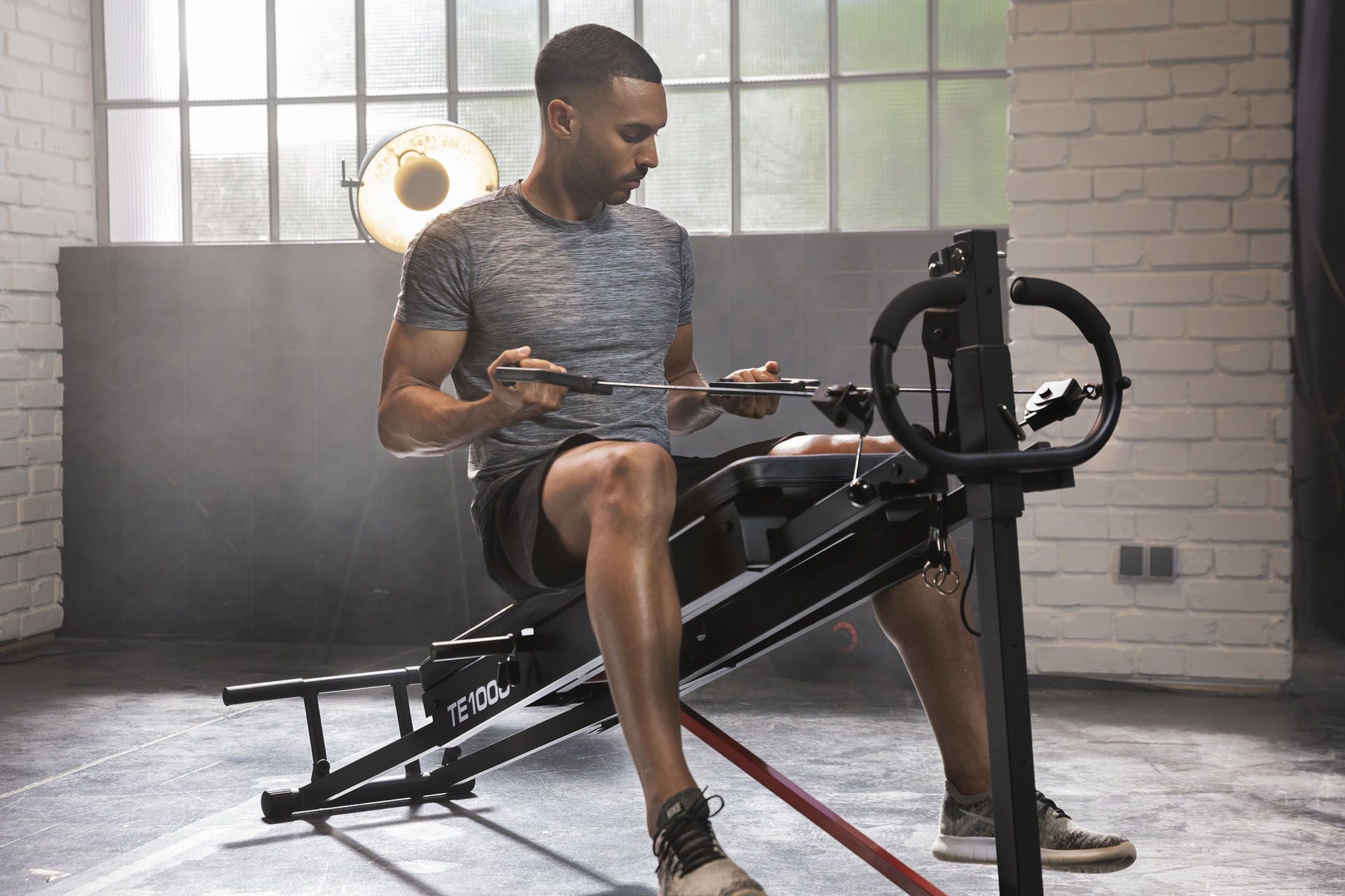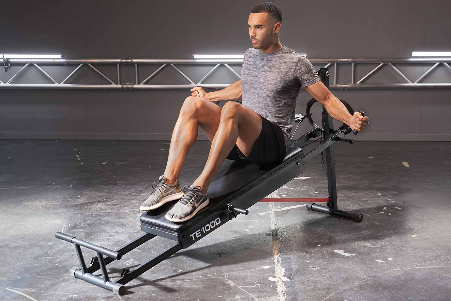 TE 1000 toimitetaan lähes täysin esiasennettuna ja se voidaan ottaa käyttöön heti pakkauksesta purkamisen jälkeen. Taittomekanismin ansiosta harjoituslaite voidaan koota ja purkaa nopeasti, mikä säästää tilaa.