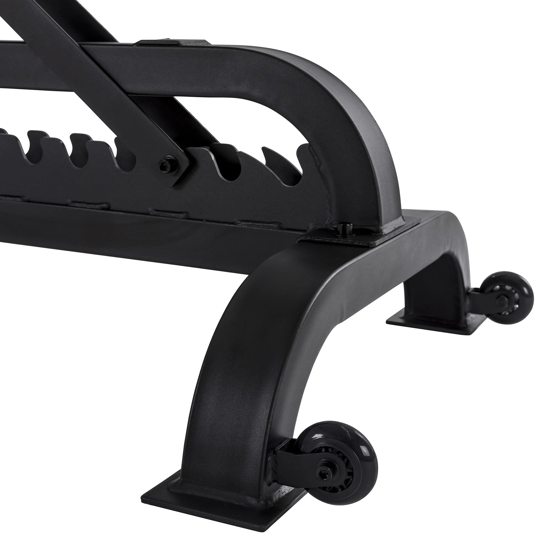 Vahvoilla kulmilla varustettu ommeltu istuin varmistaa, että voit käyttää punnituspenkkiäsi monta vuotta, ja estää herkkien osien kulumisen ja vahingoittumisen.